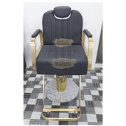 Modern Luxury Salon Styling Chair with Hydraulic Lift | Round Gold Disc Plate | Grey