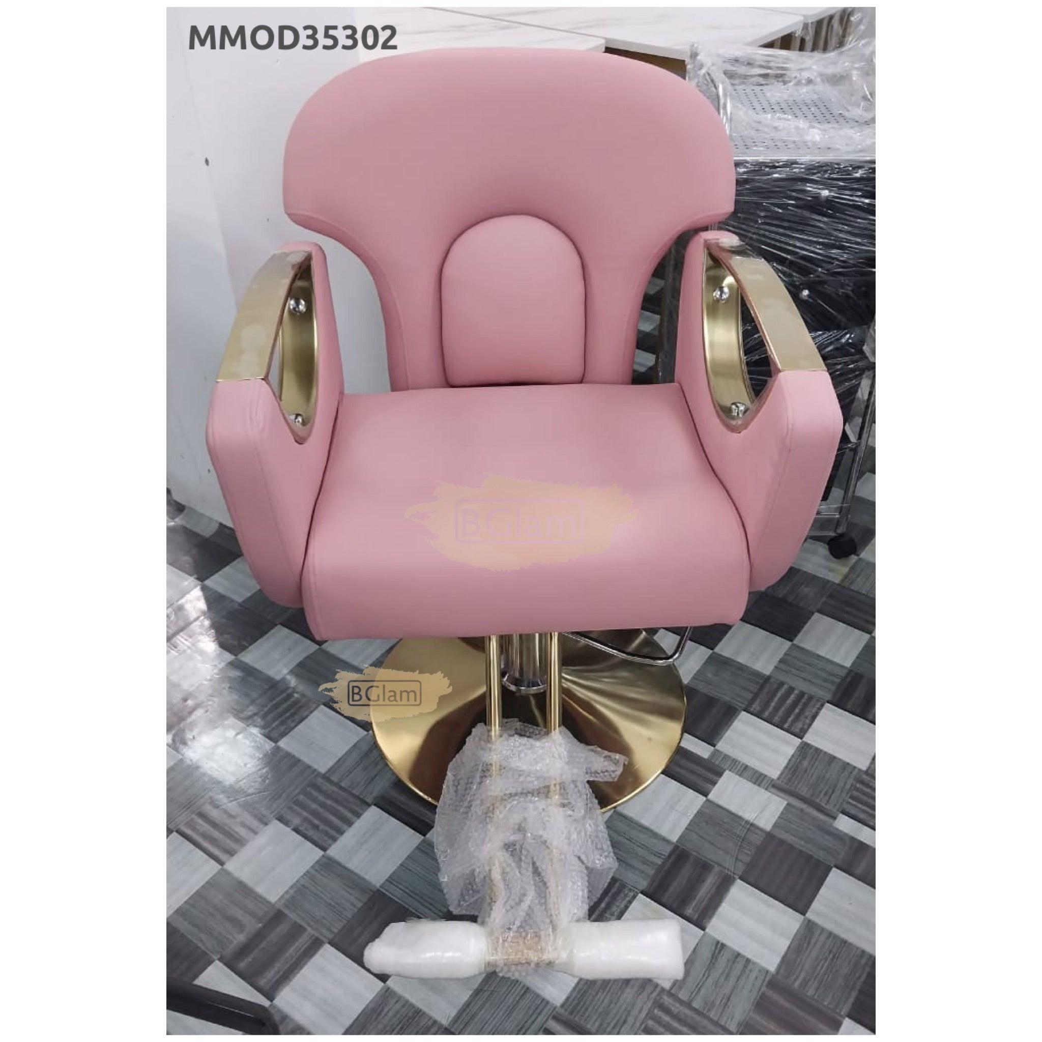 Modern Salon Styling Chair with Hydraulic Lift | Round Gold Disc Plate | ROSE/GOLD