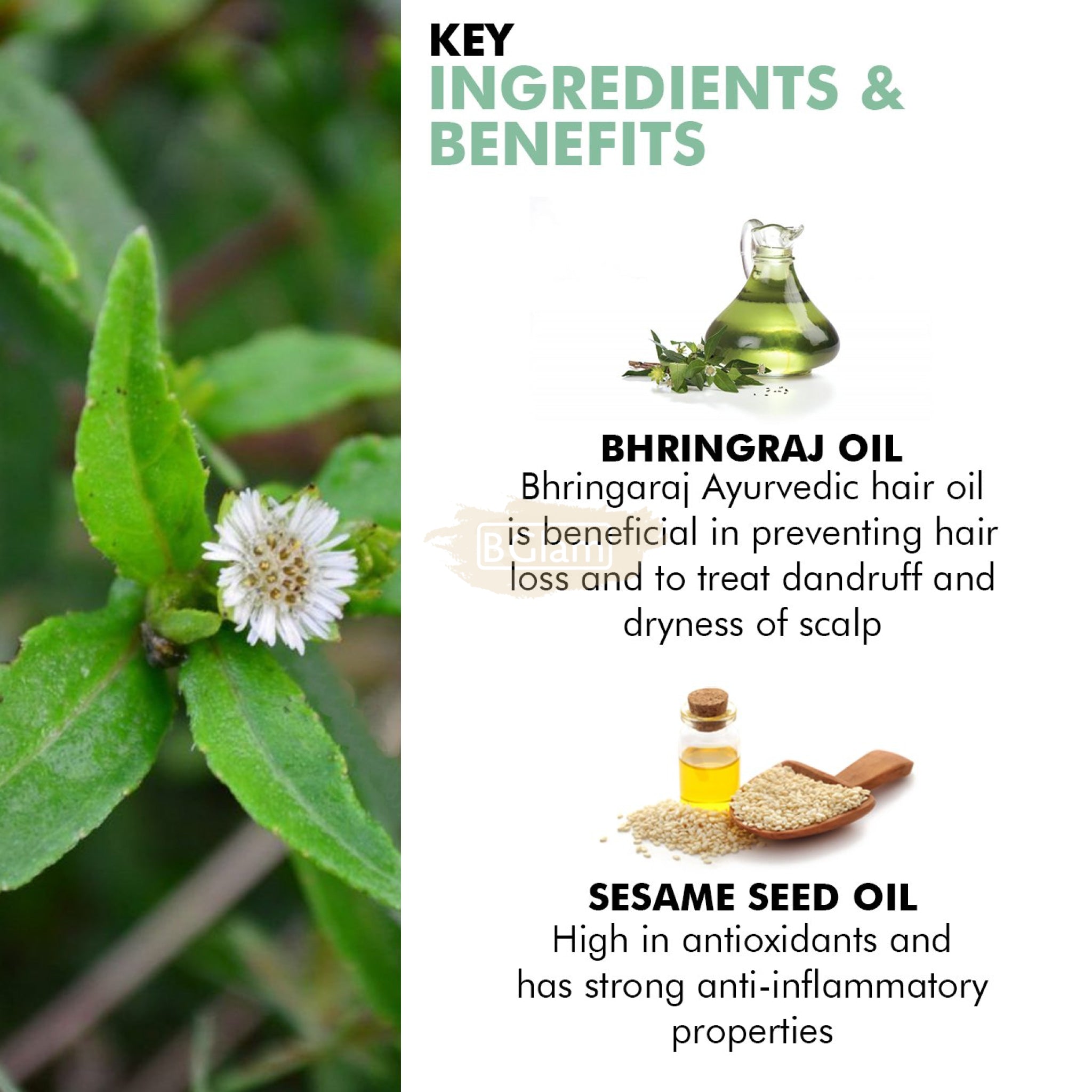 Bhringraj Oil, Sesame seed Oil.