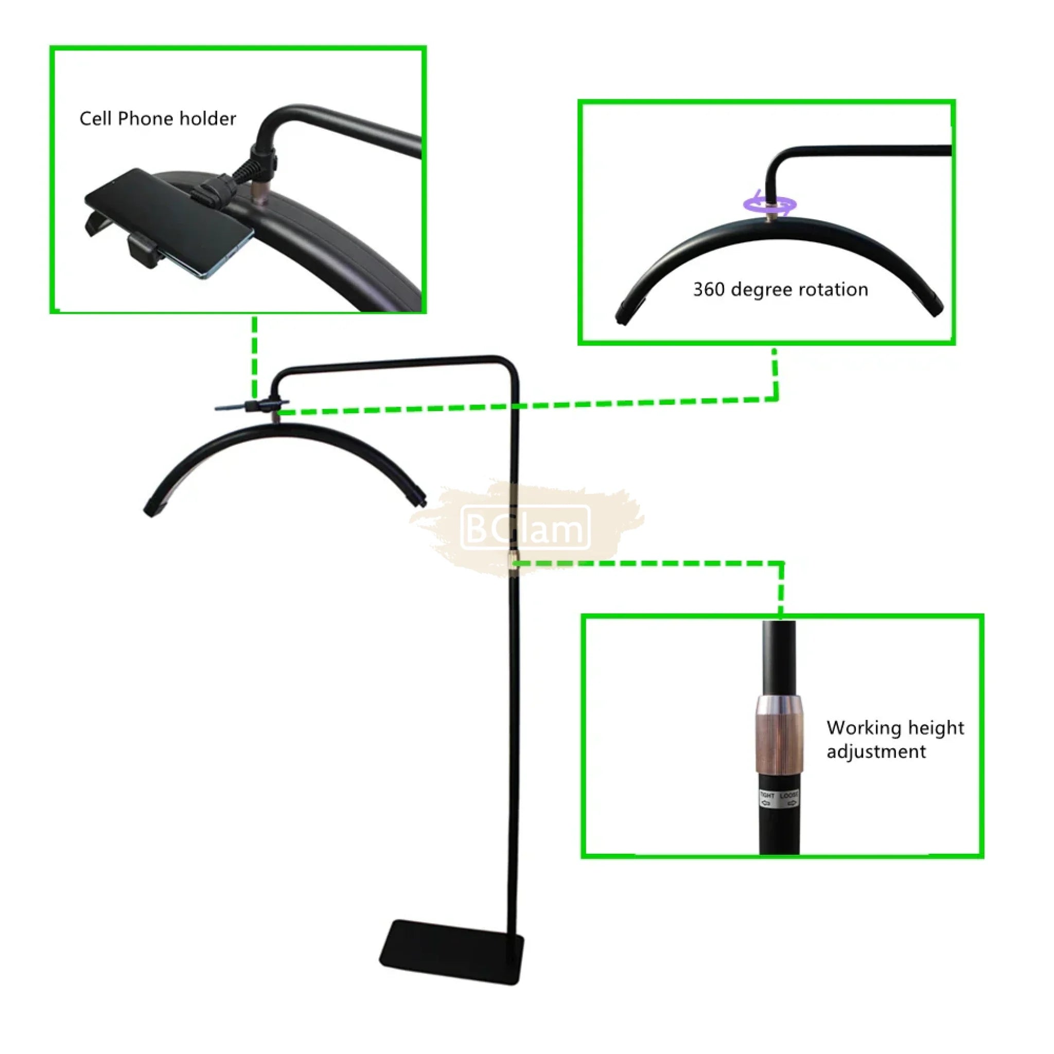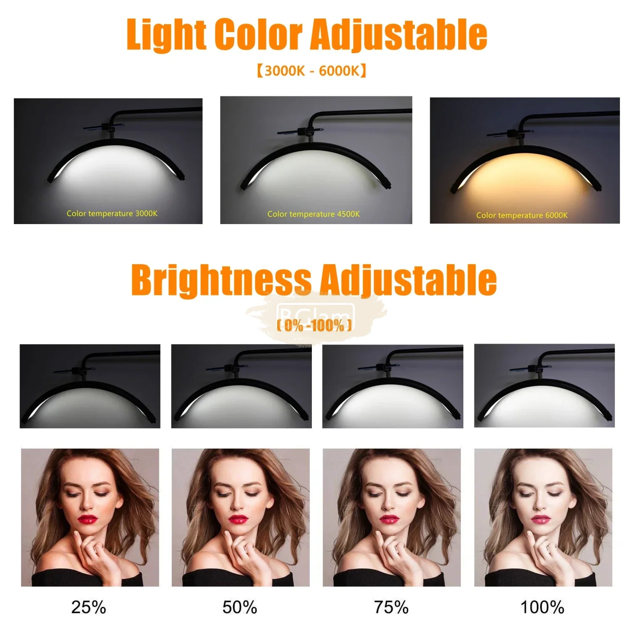 Double Arms Dimmable LED Cosmetic Lamp with Phone Clip & Tripod