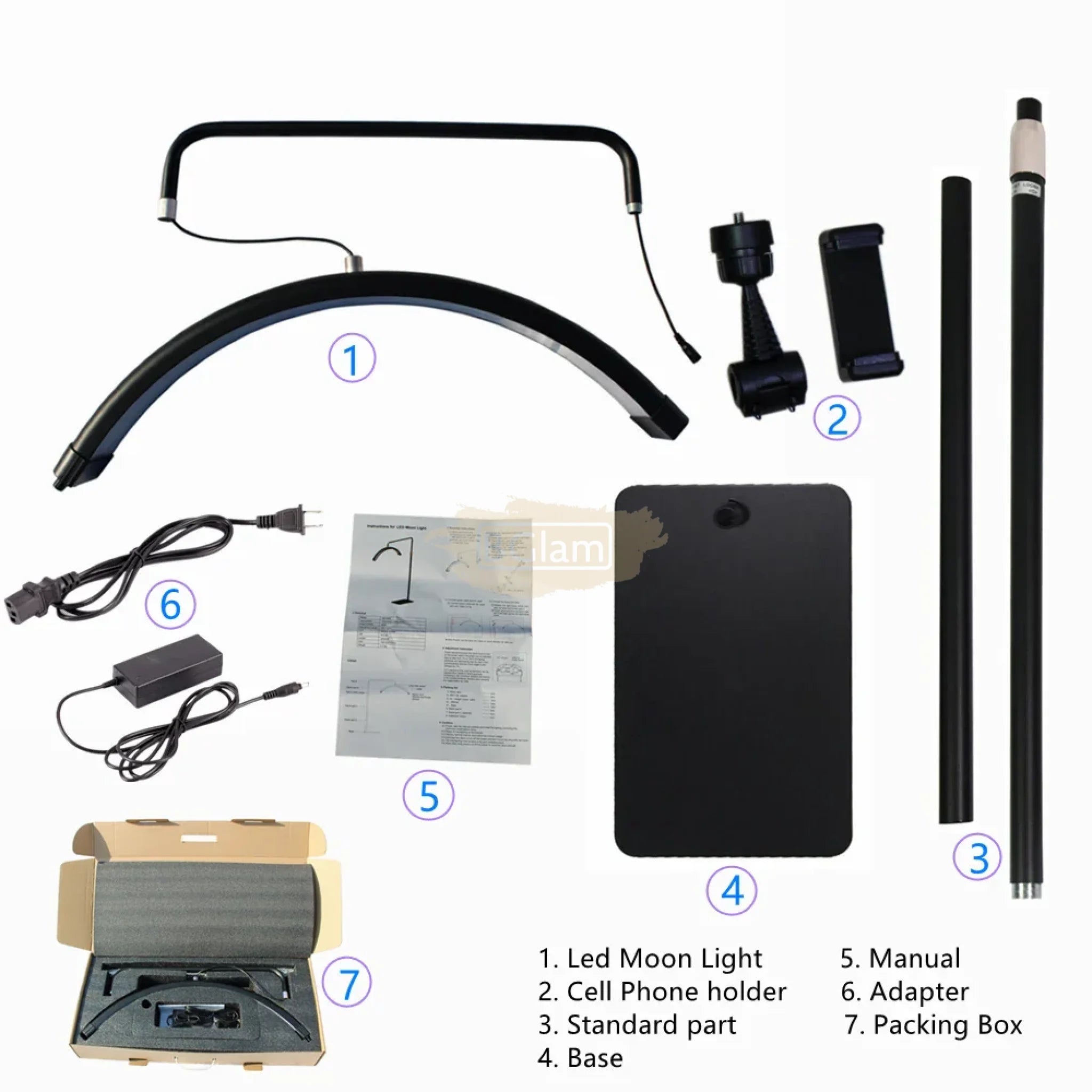 Black Half Moon Floor LED Lamp HD-M8X | 125-180 cm | 71cm | 50W