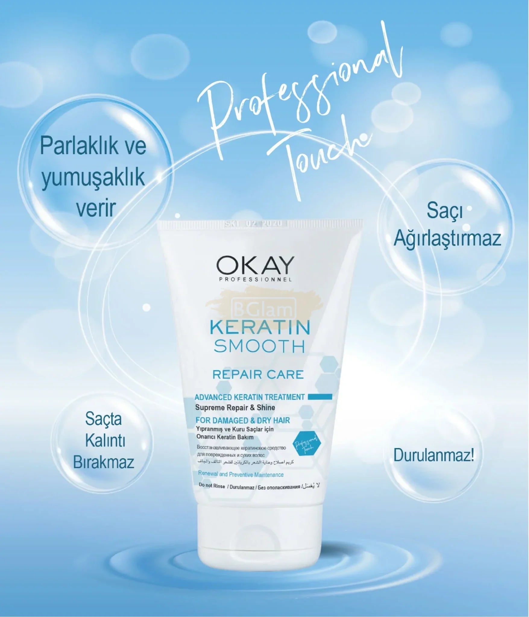 Okay Professional Keratin Smooth Repair Cream 100ml | No Rinse | For Dry & Damaged Hair