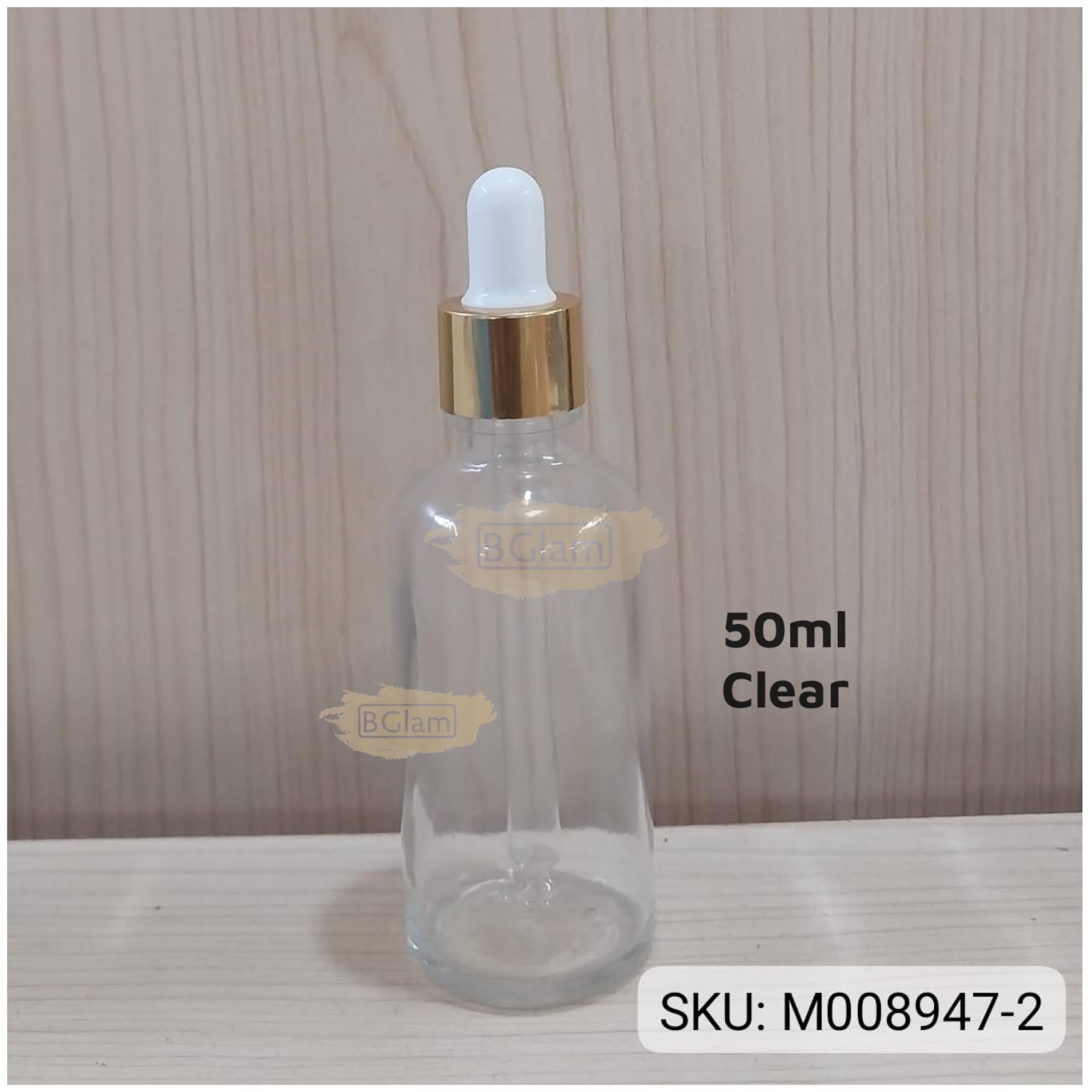 Glass Dropper Bottle | Gold Cap | 50ml (Clear)
