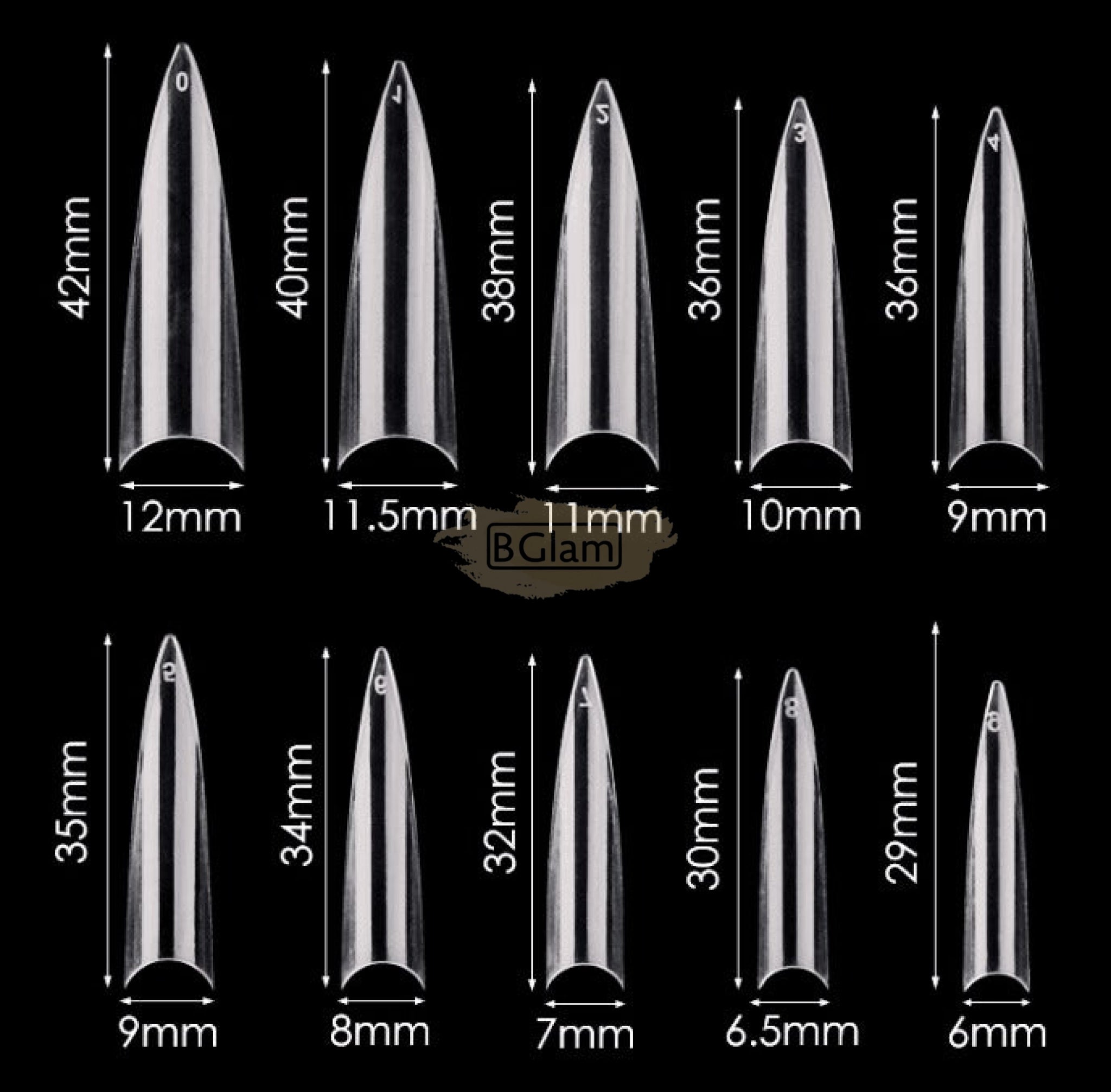 Half Cover Stiletto Round Edge Nail Tips Clear 500 Tips