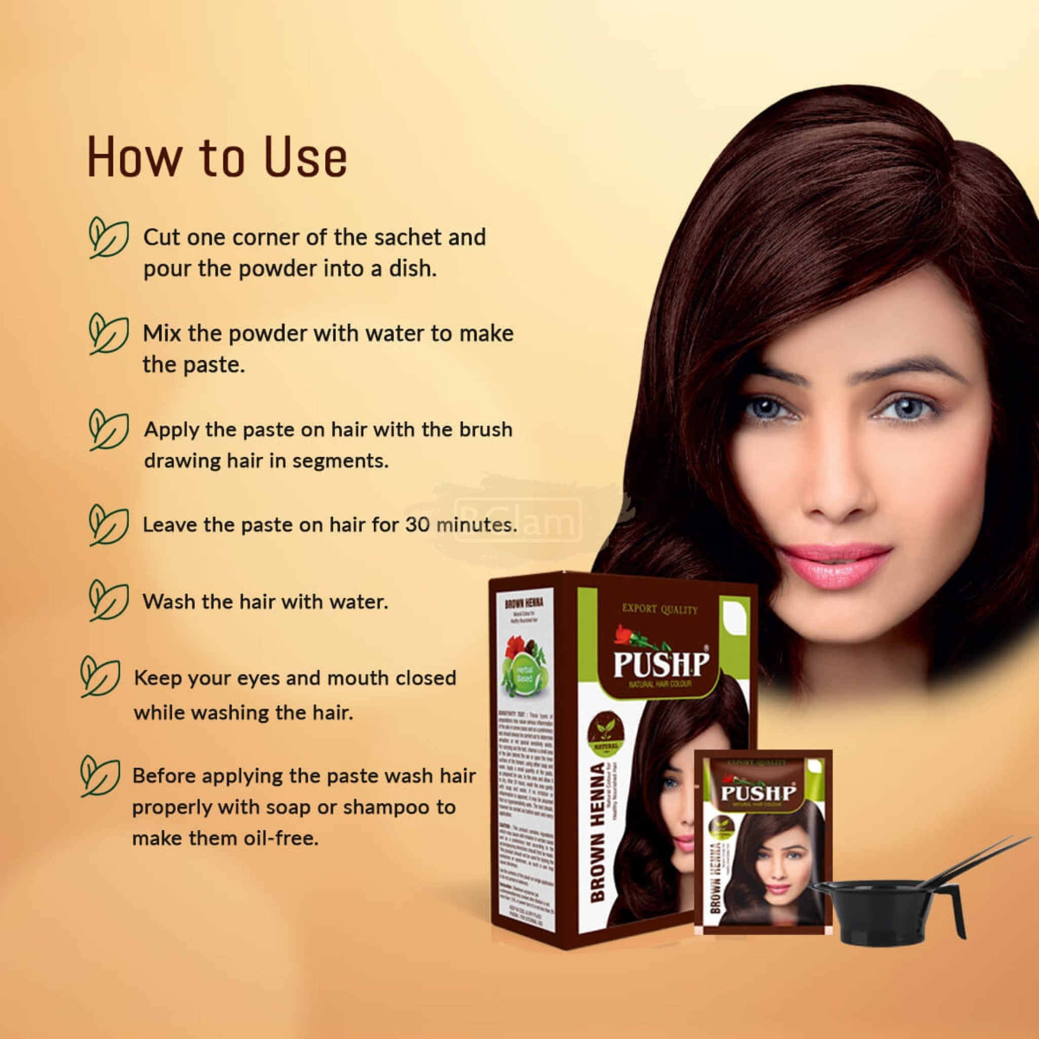 PUSHP Brown Henna Natural Hair Color (6x10g) | Herbal Dye