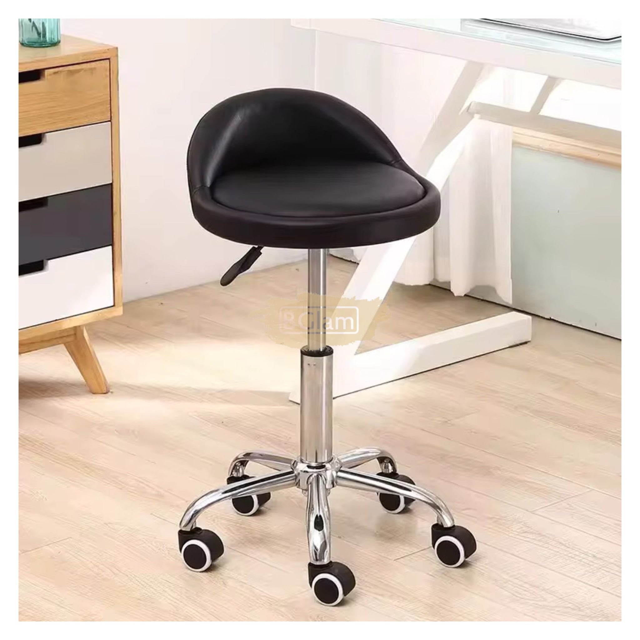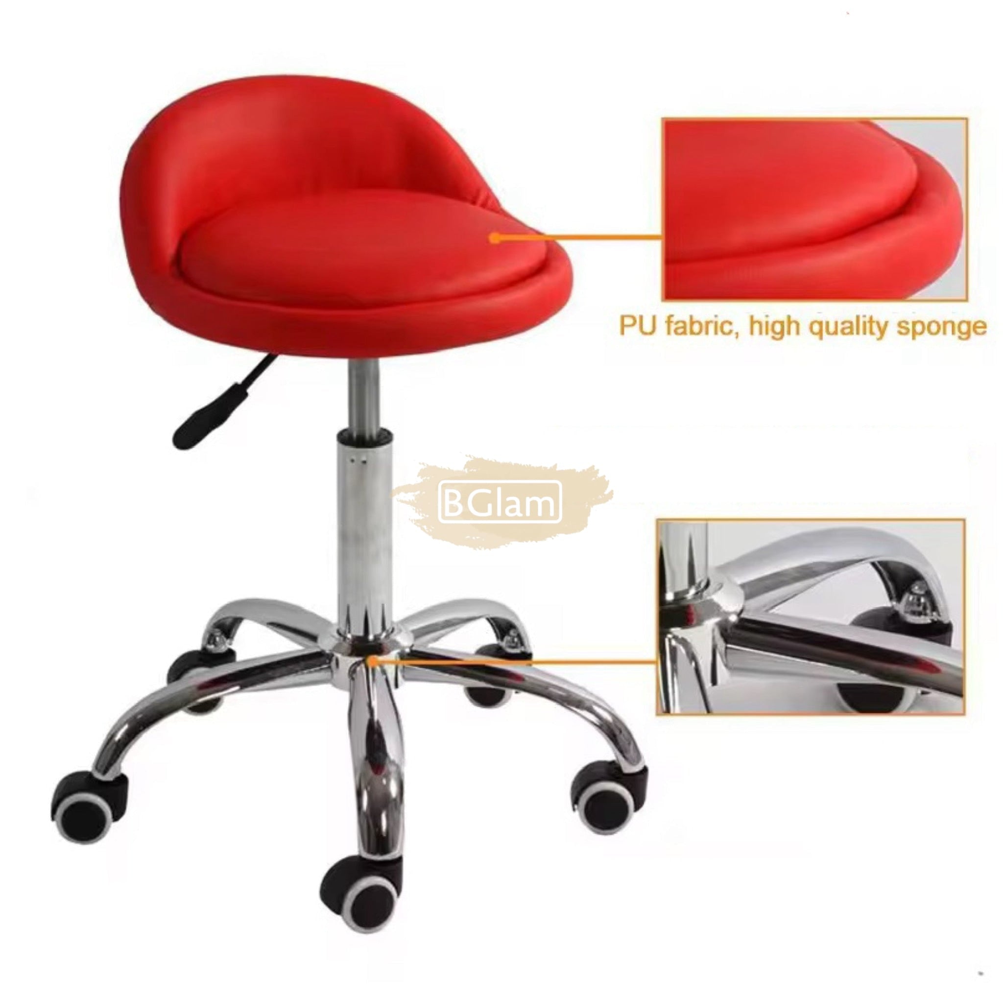 Low profile stool on wheels with back support | Red