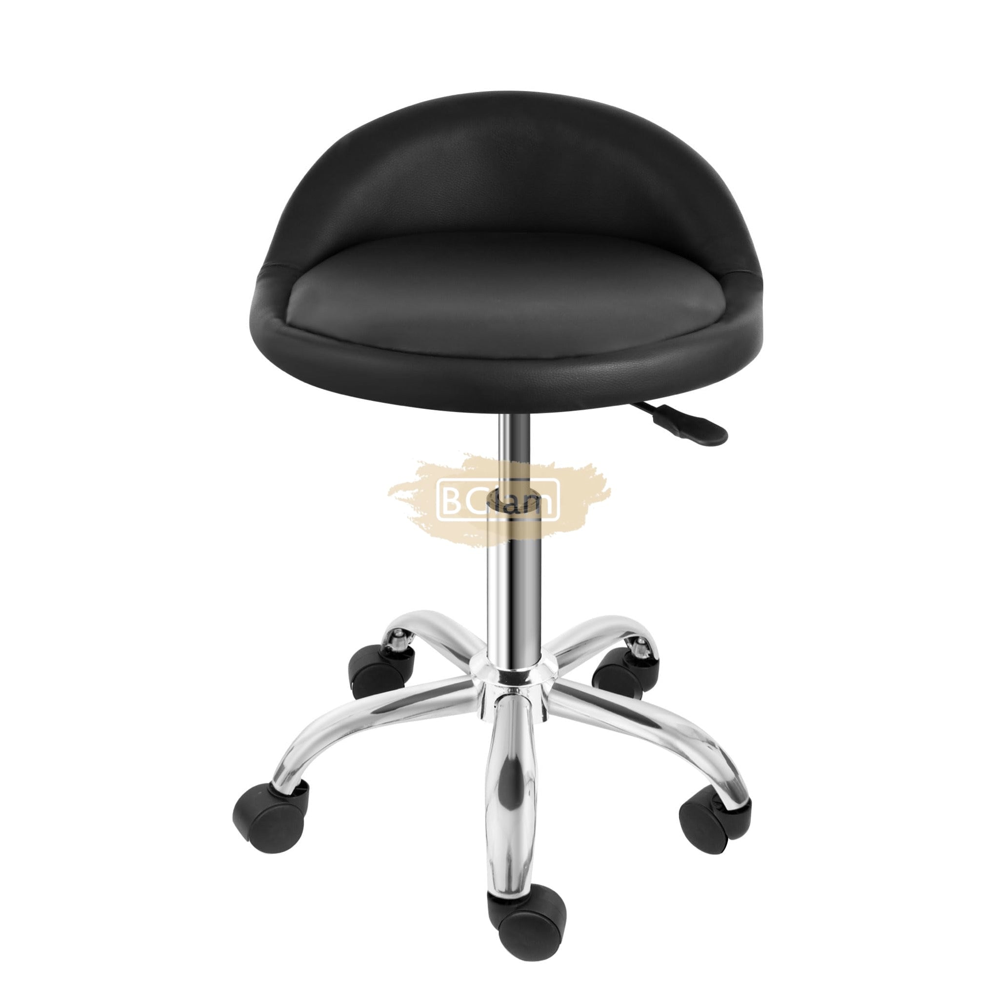 Low profile stool on wheels with back support | Red Stool