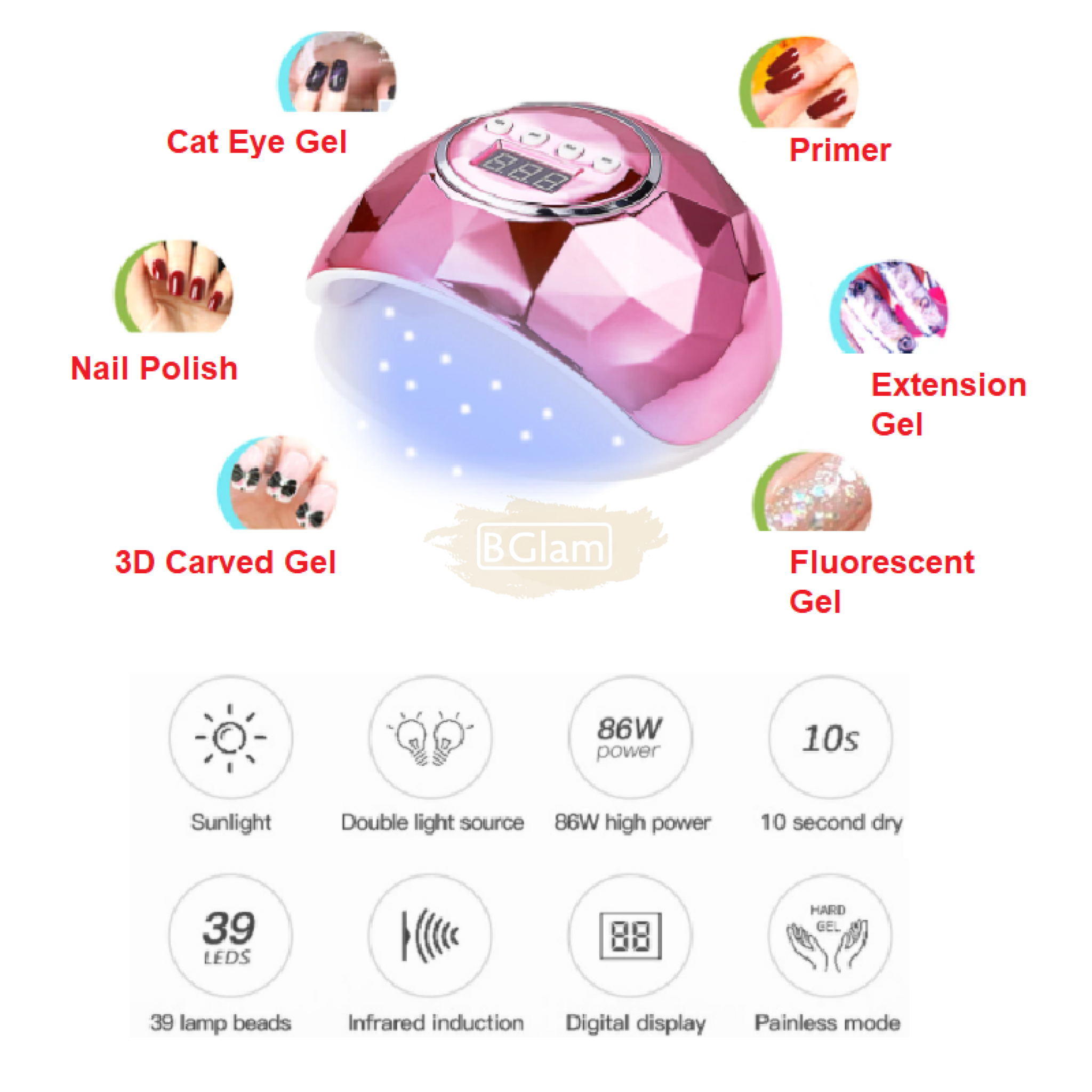 Diamond Design UV LED Nail Lamp 86W | Pink