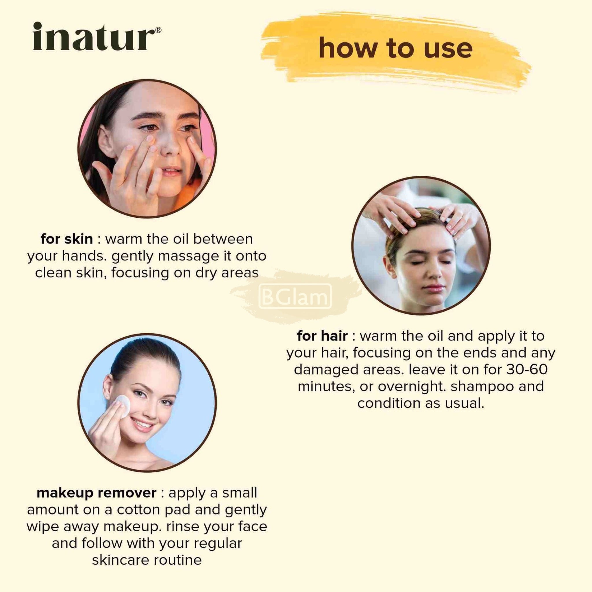 Makeup Remover: Apply a small amount of inatur coconut oil to a cotton pad and gently wipe away makeup, including waterproof mascara. Rinse your face afterward and follow with your regular skincare routine.