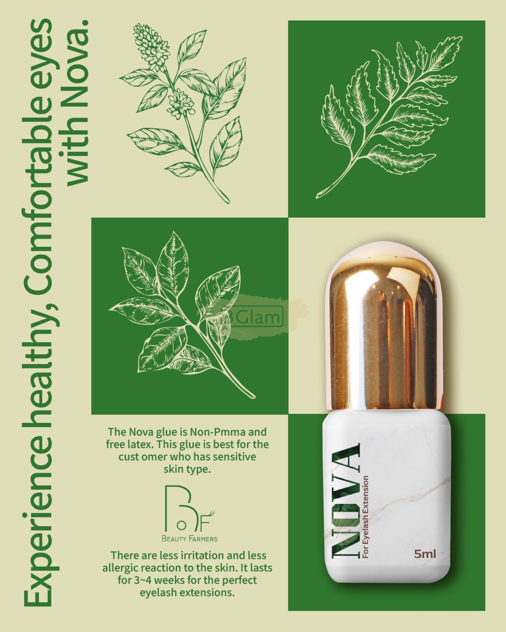 The Nova Glue is non-PMMA and latex-free, making it ideal for clients with sensitive skin. It offers reduced irritation and minimizes the risk of allergic reactions.