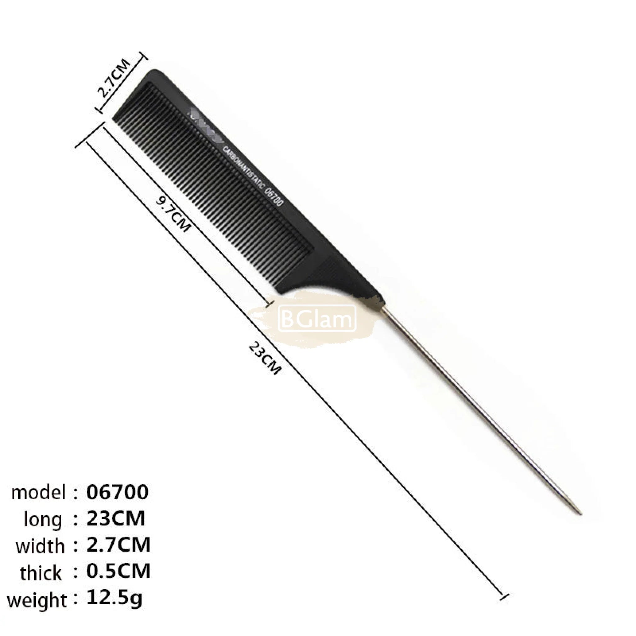 Carbon Anti-Static Pin Tail Comb 6700
