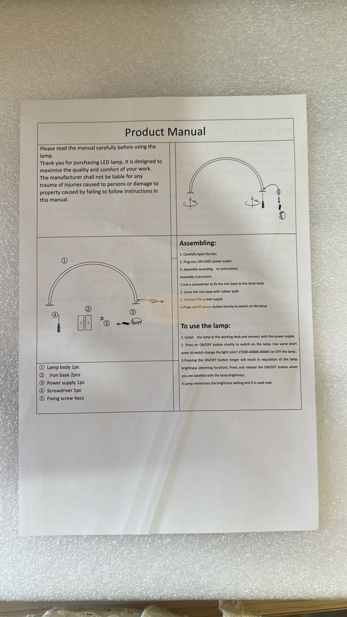 U-Shaped Beauty Table Lamp with Diamond 550mm | White