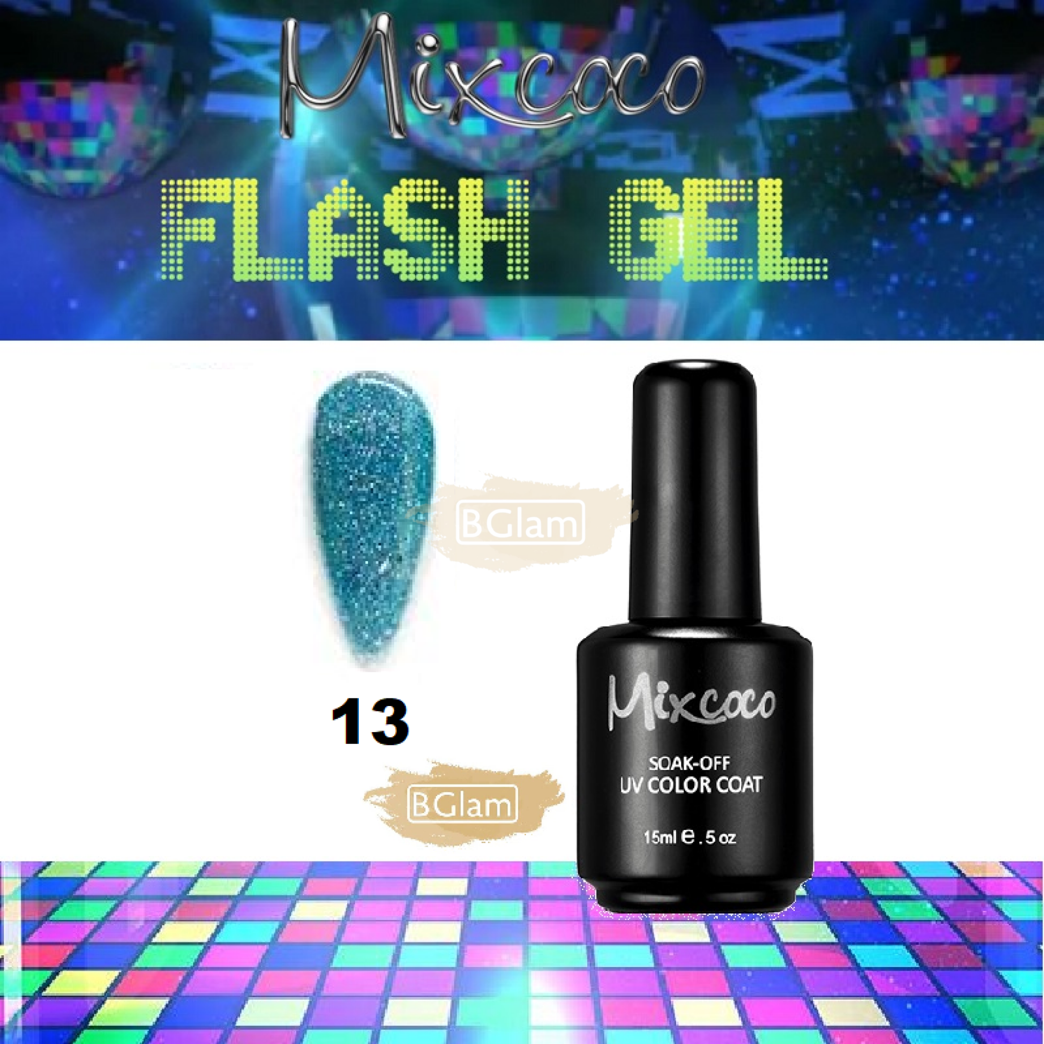 Mixcoco Soak-Off Gel Polish 15ml | Disco Flash Gel | 13