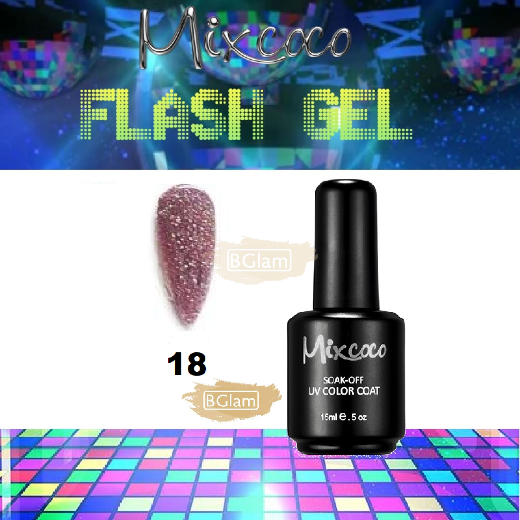 Mixcoco Soak-Off Gel Polish 15ml | Disco Flash Gel | 18