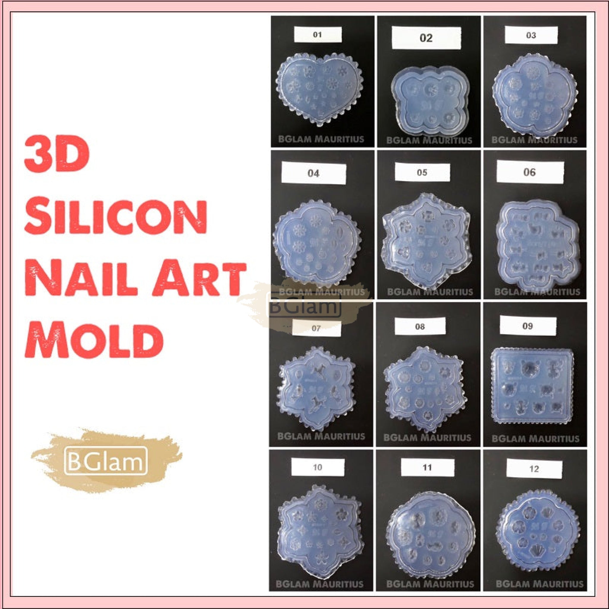 3D Carving Silicone Nail Mold Template - Available in 12 Designs