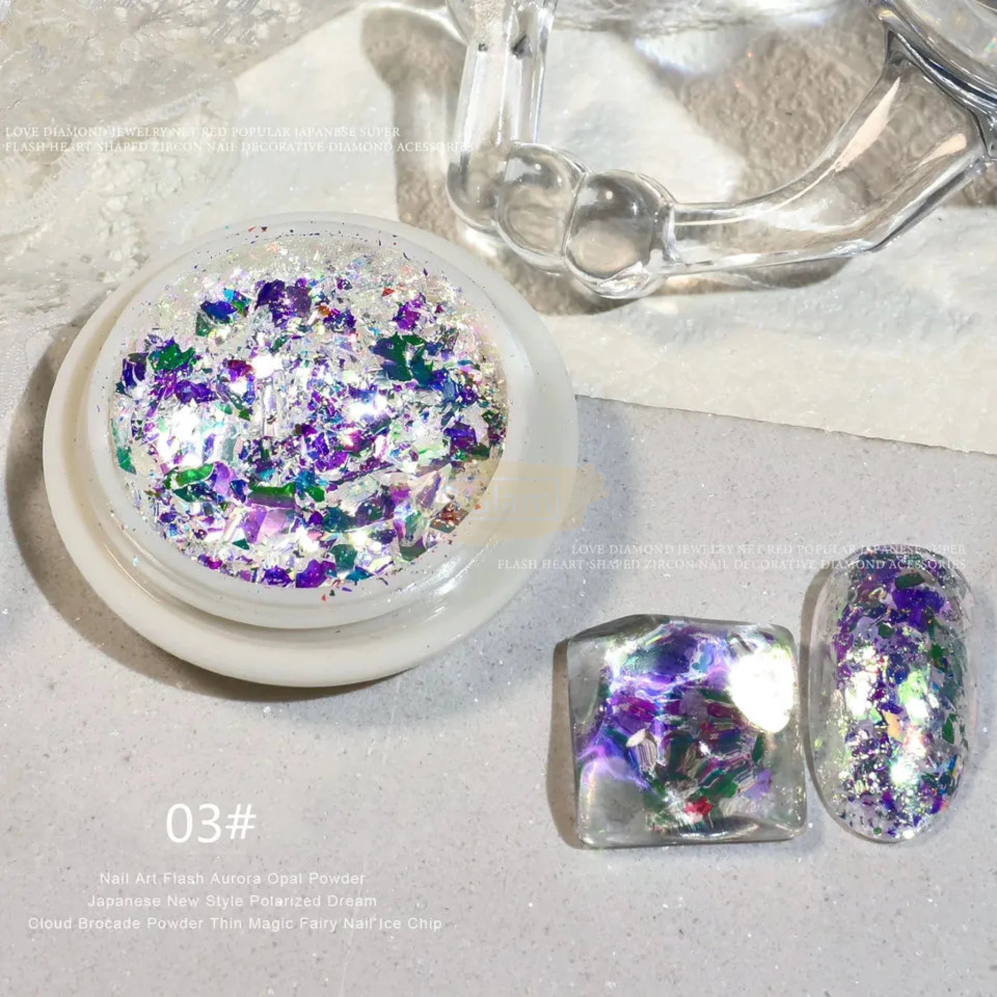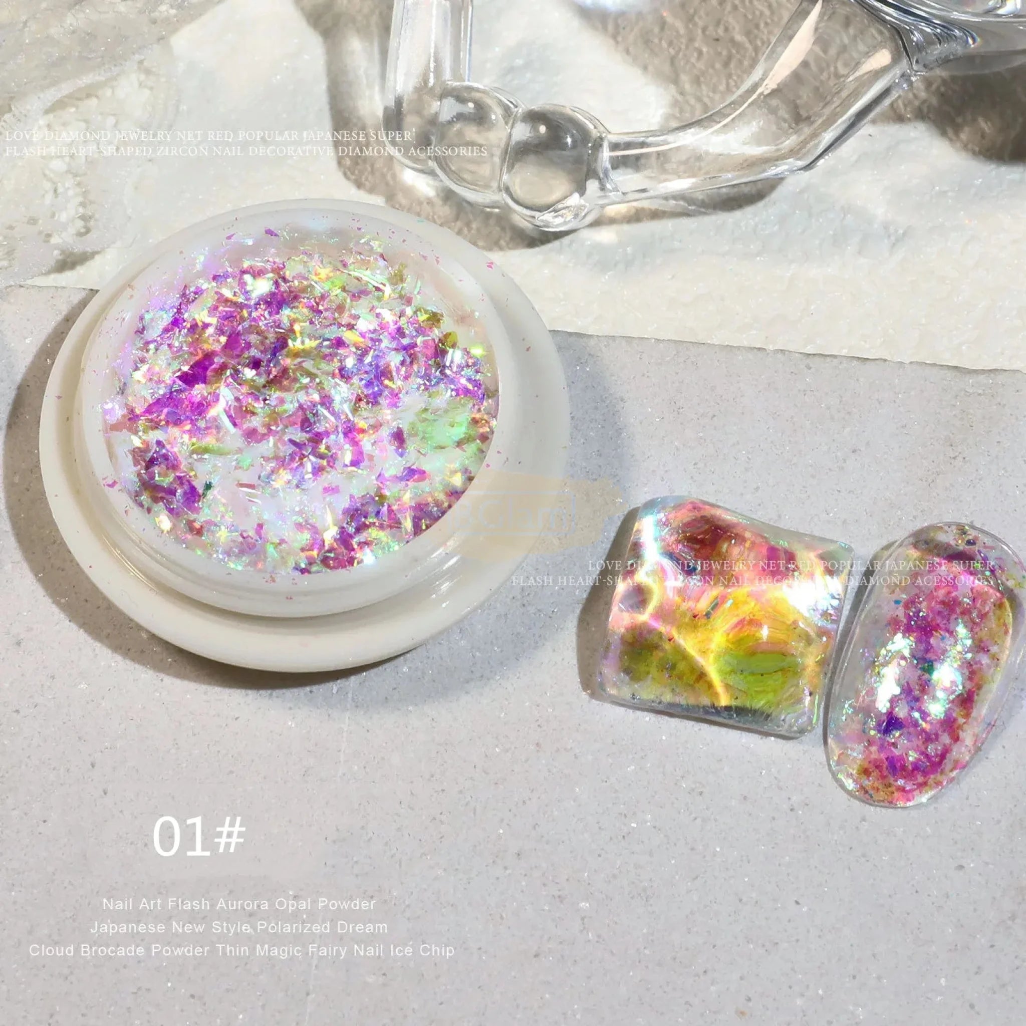 Crystal Fire Opal Flakes Nail Sequins with brush QT0456