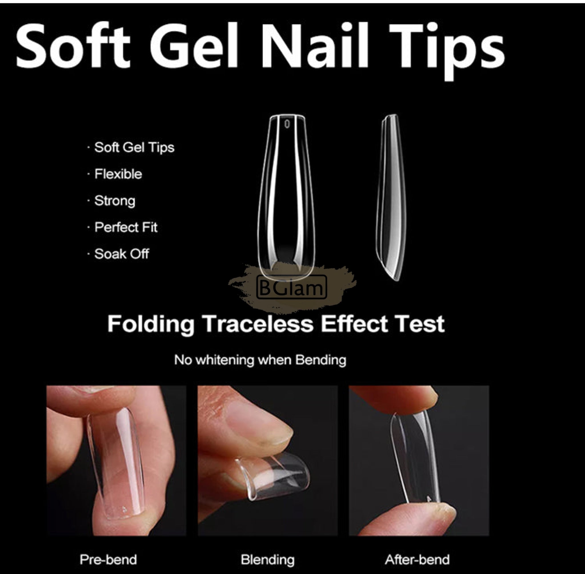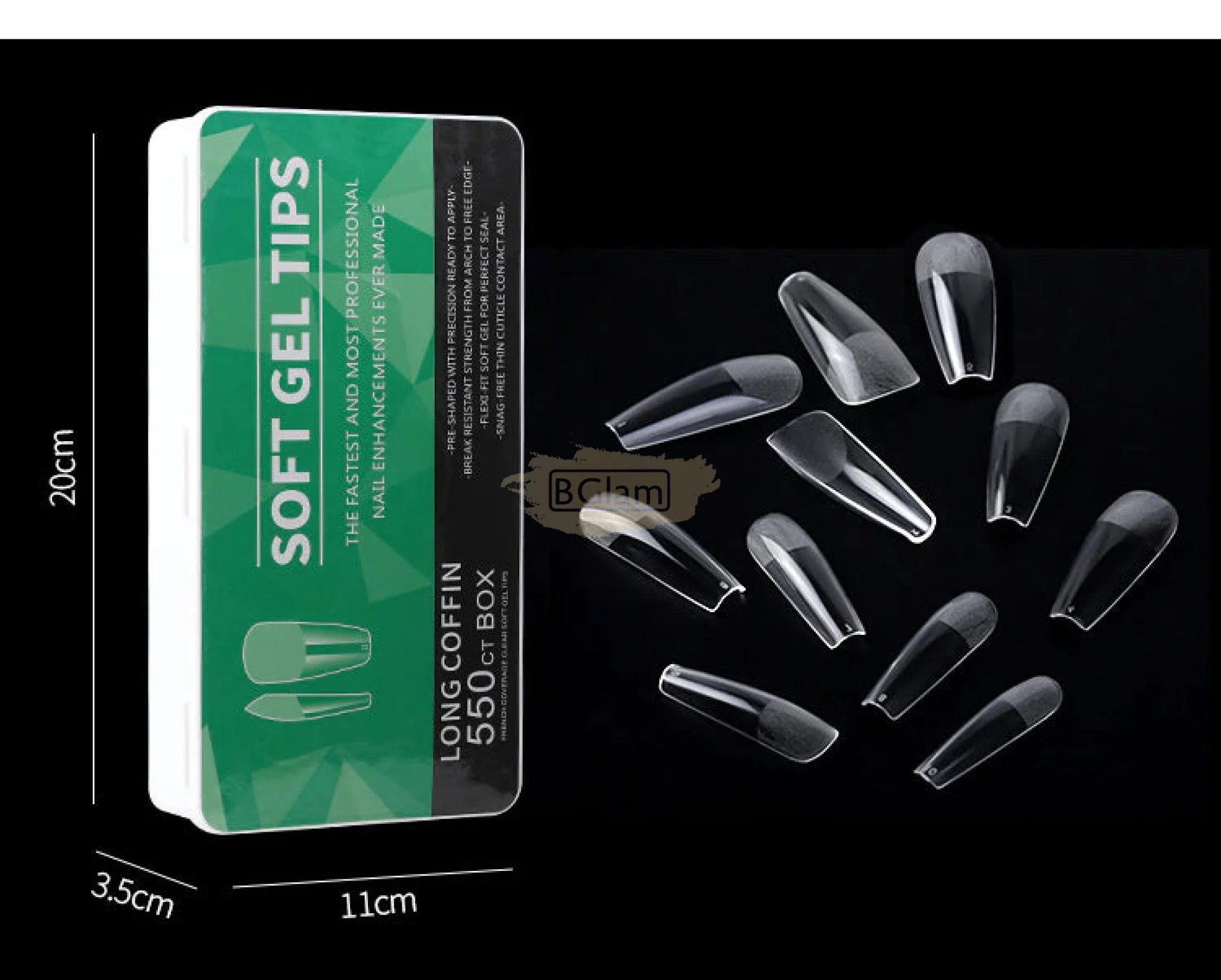 550pcs Soft Gel Tips Long Coffin | Full Cover | H105-1 Green Box