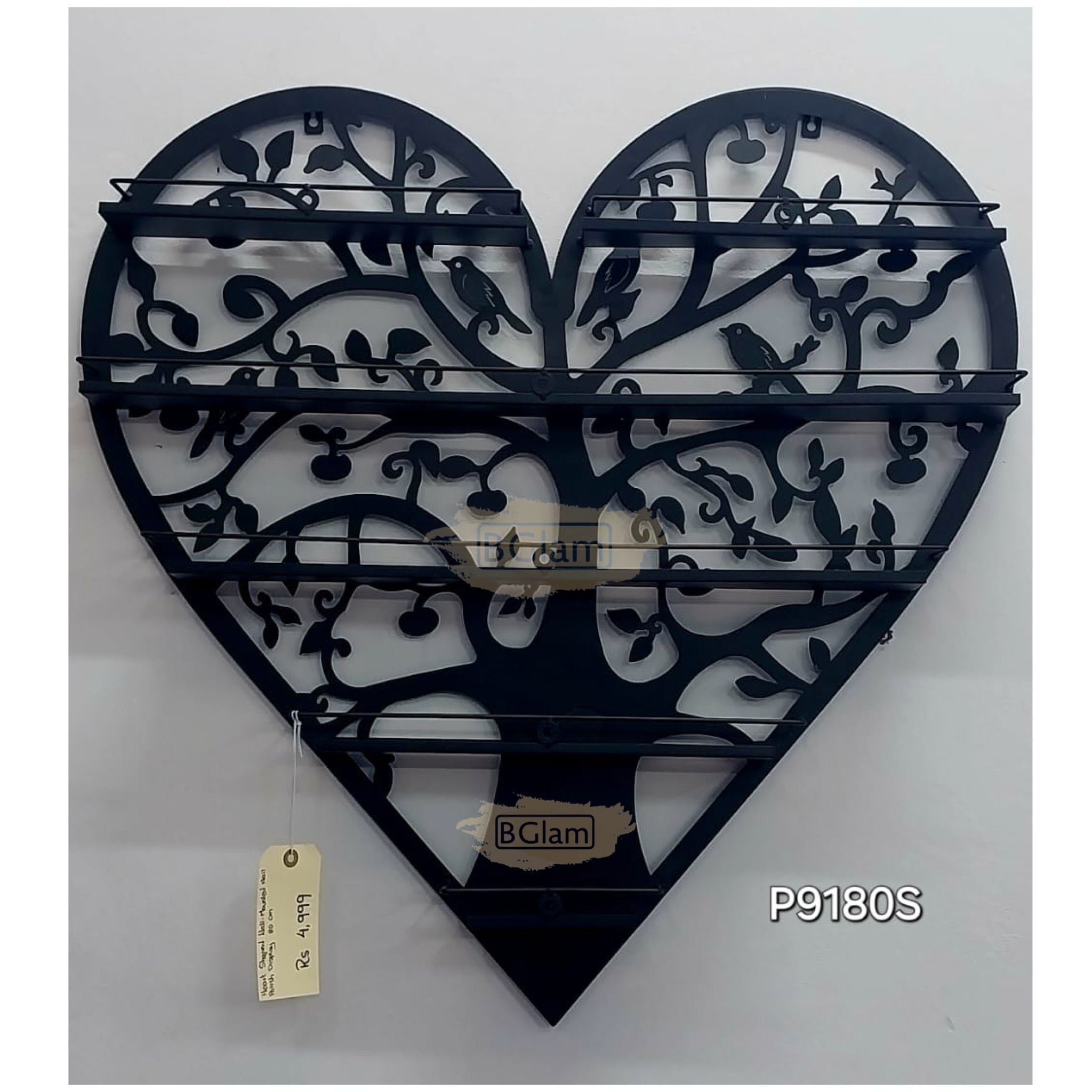 6-Tier Heart Shaped Wall-Mounted Nail Polish Display Rack 95cm - Black (rack only)