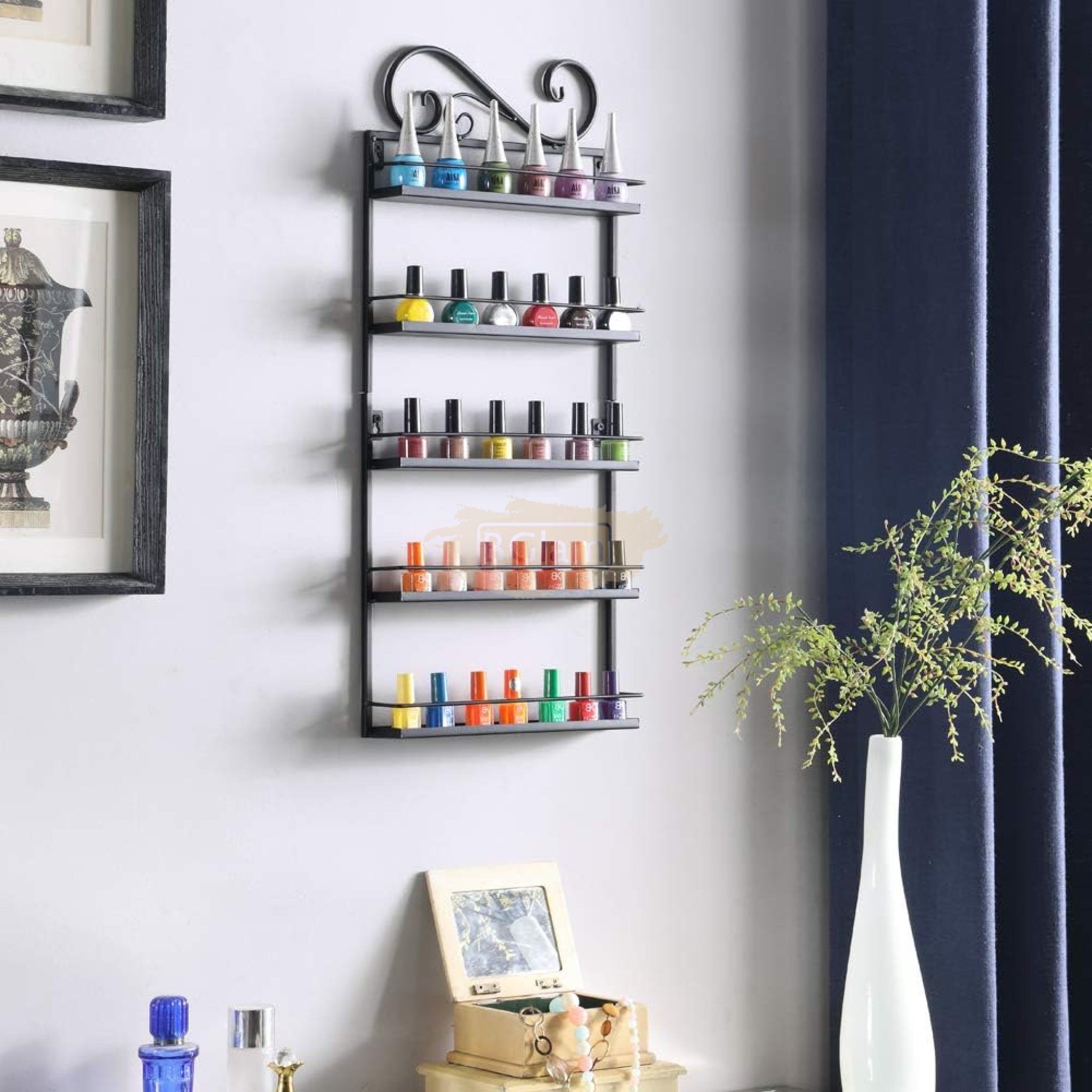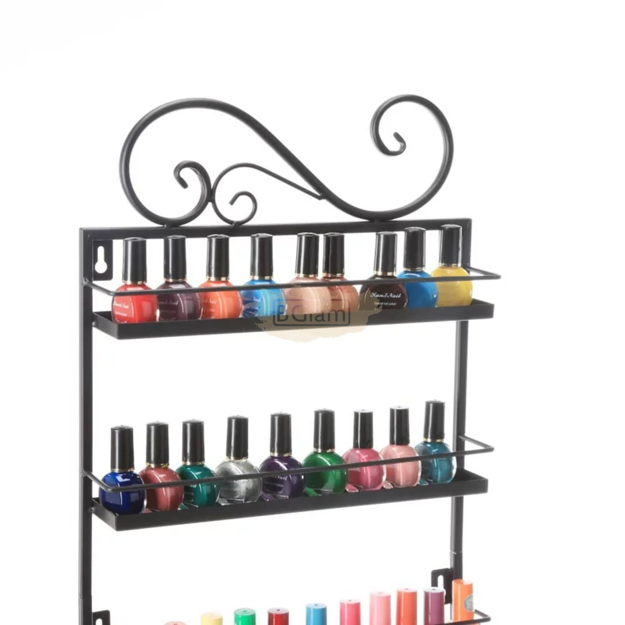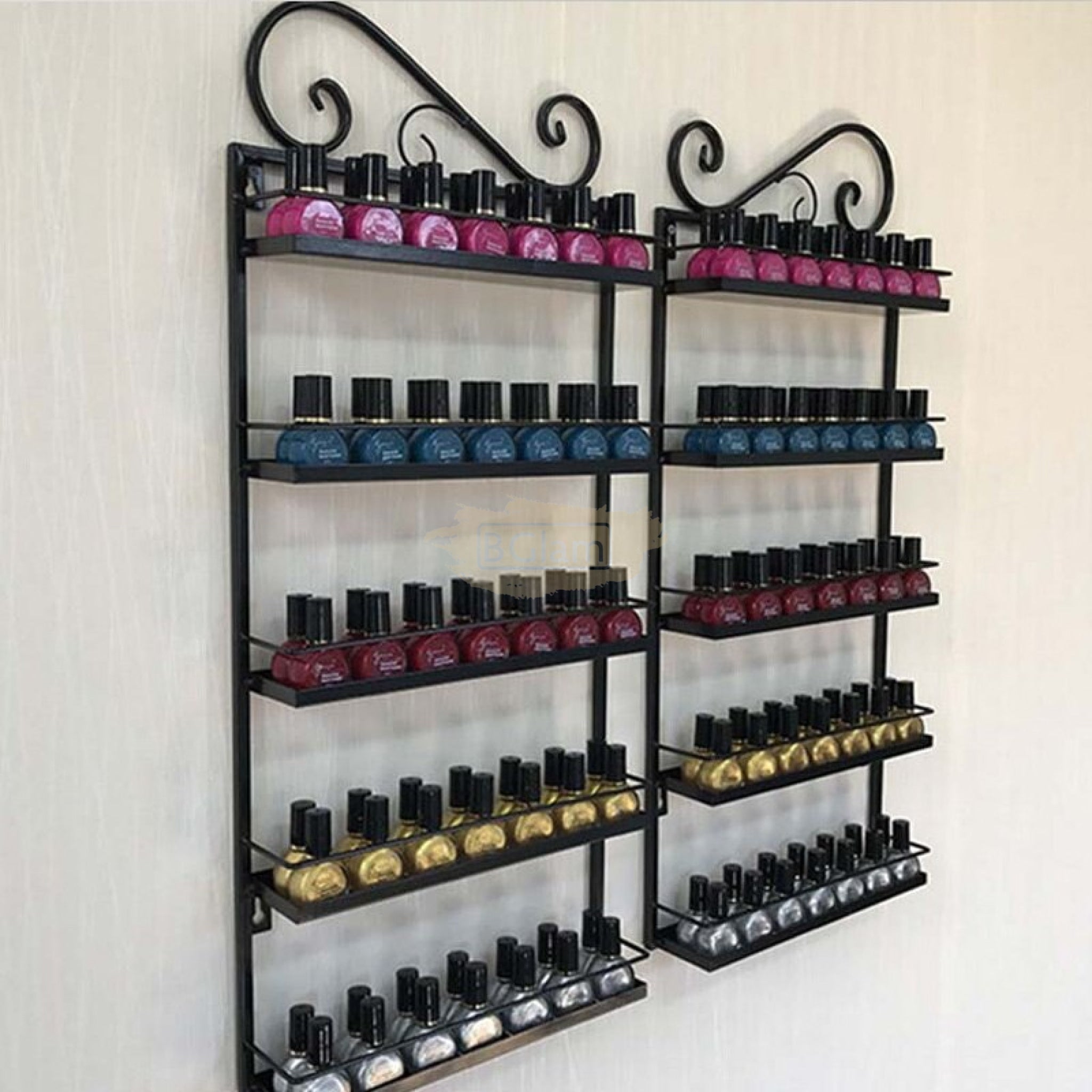 5-Tier Wall-Mounted Iron Nail Polish Display Rack (1 pair) | Black (rack only)