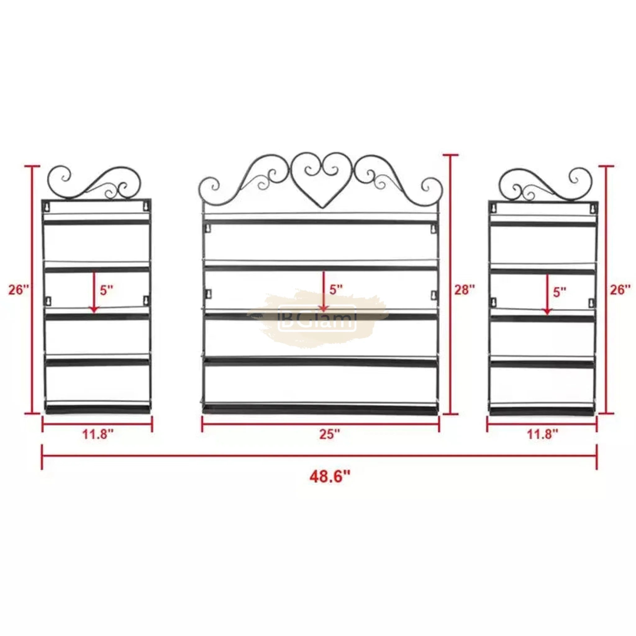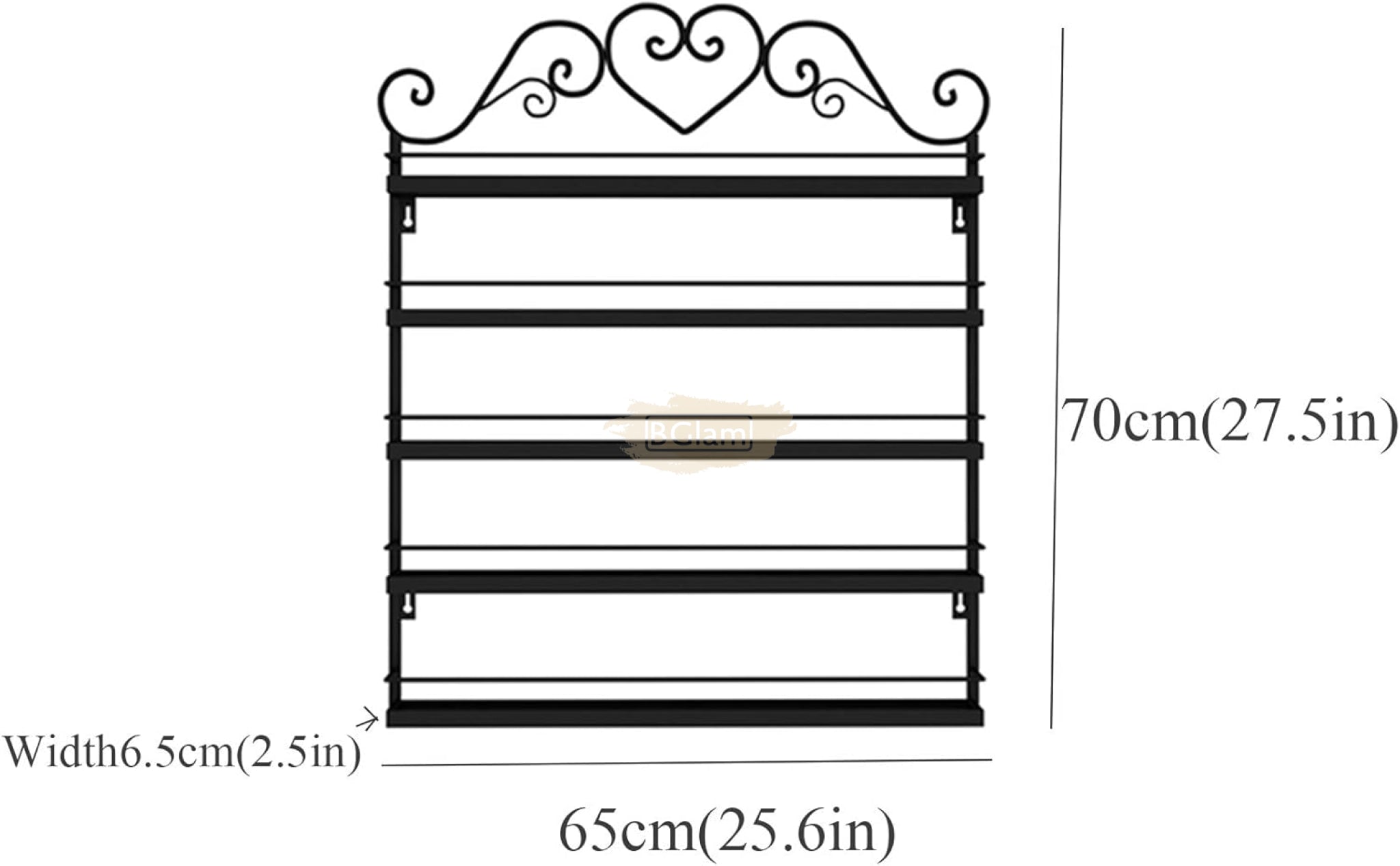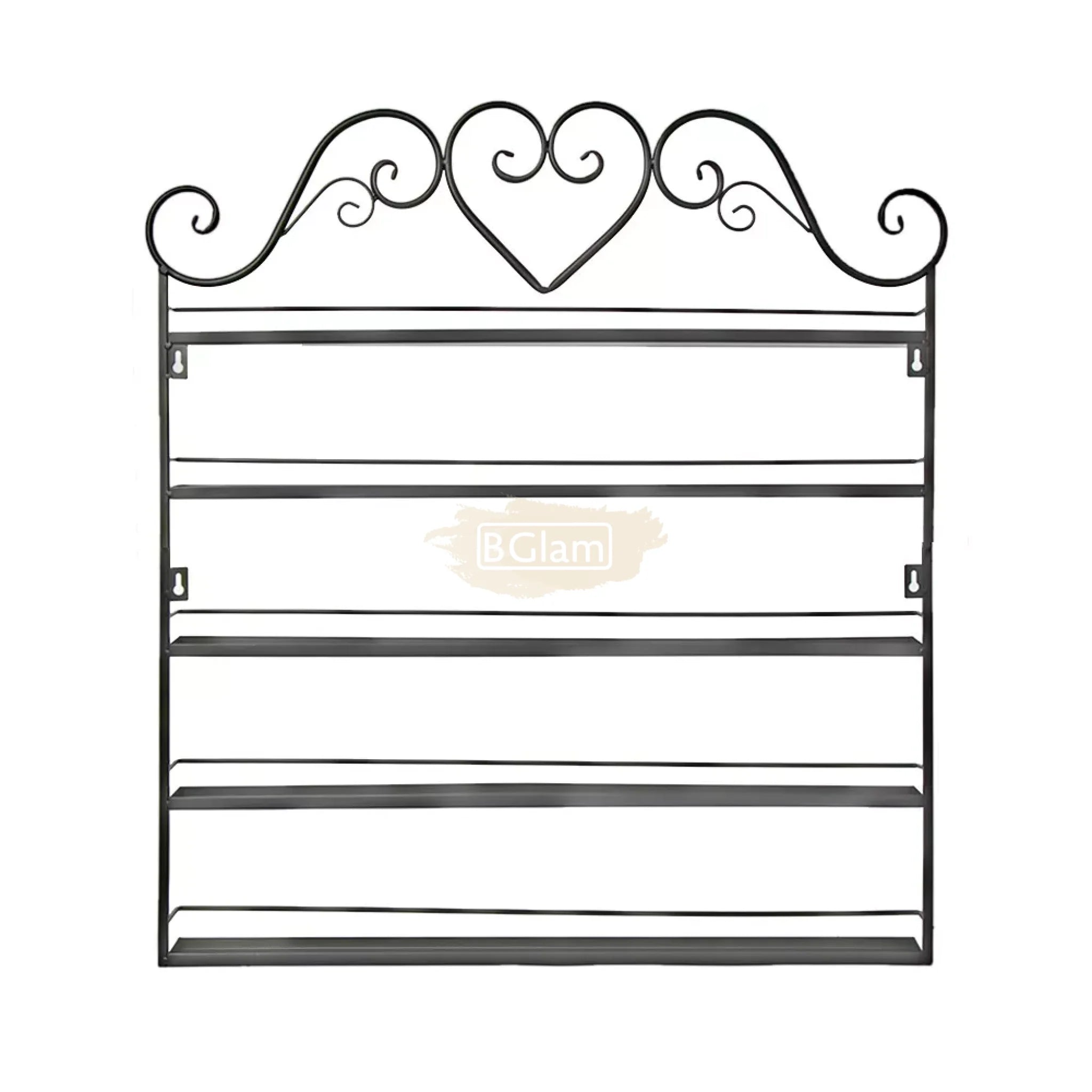 5-Tier Wall-Mounted Nail Polish Display Rack with Heart Top & 2 Sides - Black (rack Only)