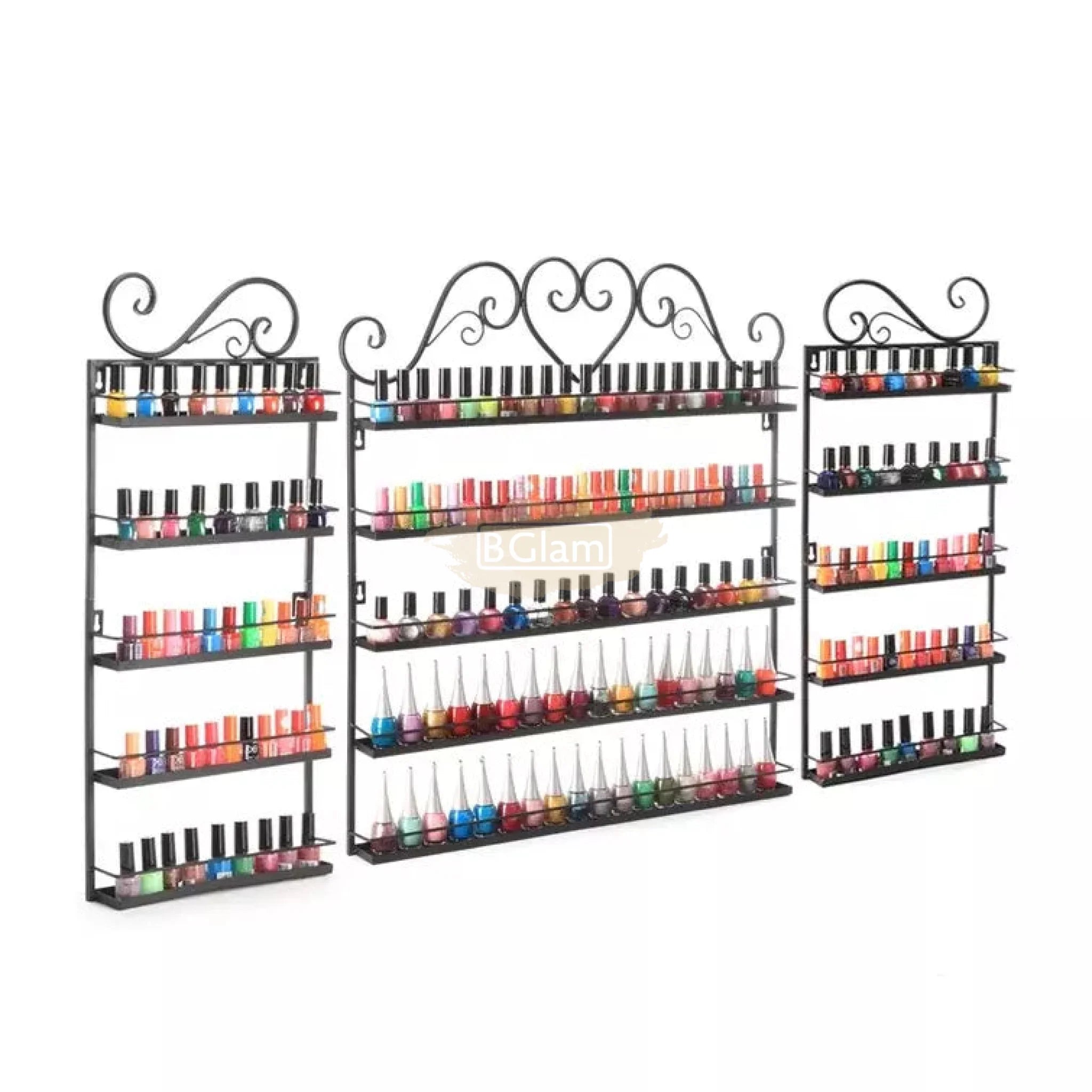 5-Tier Wall-Mounted Iron Nail Polish Display Rack (1 pair) | Black (rack only)