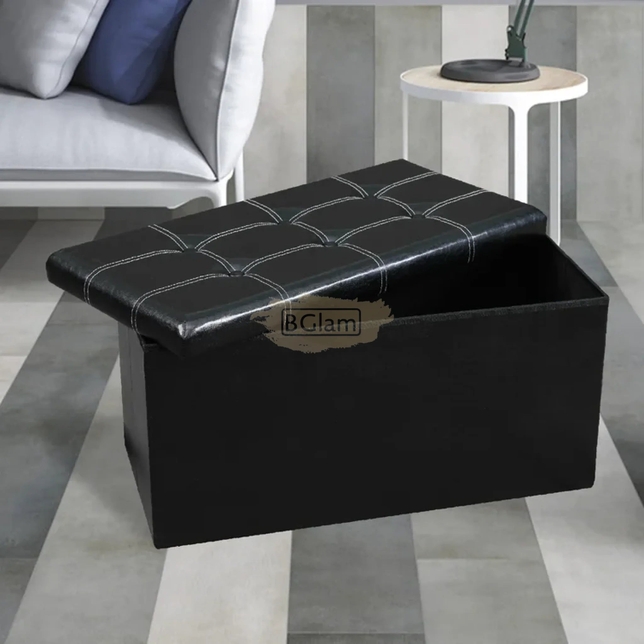 Foldable Ottoman with storage | Black with white | 76*38*38cm