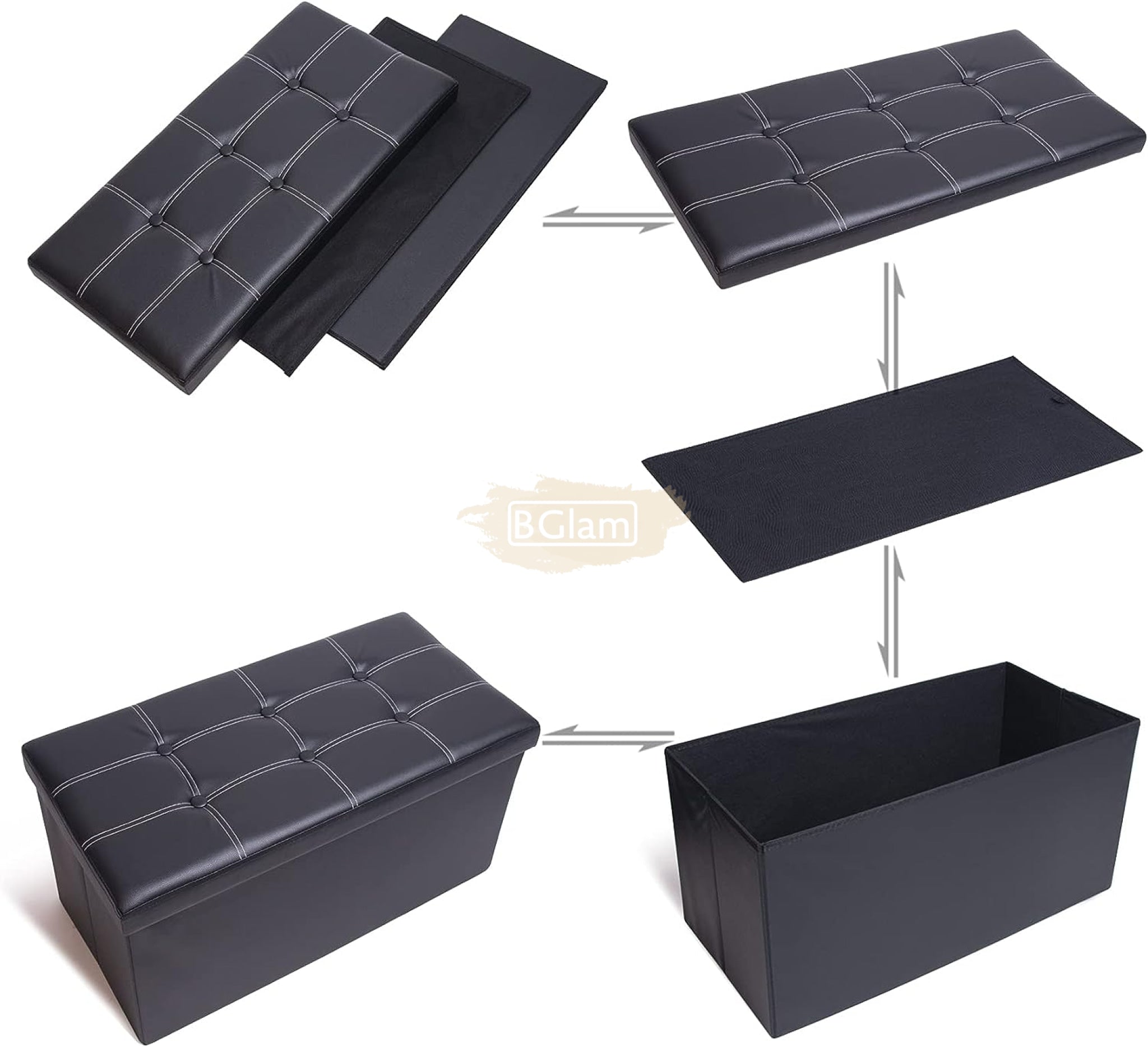 Folding Square Ottoman with Storage | Black | 36*36*36cm
