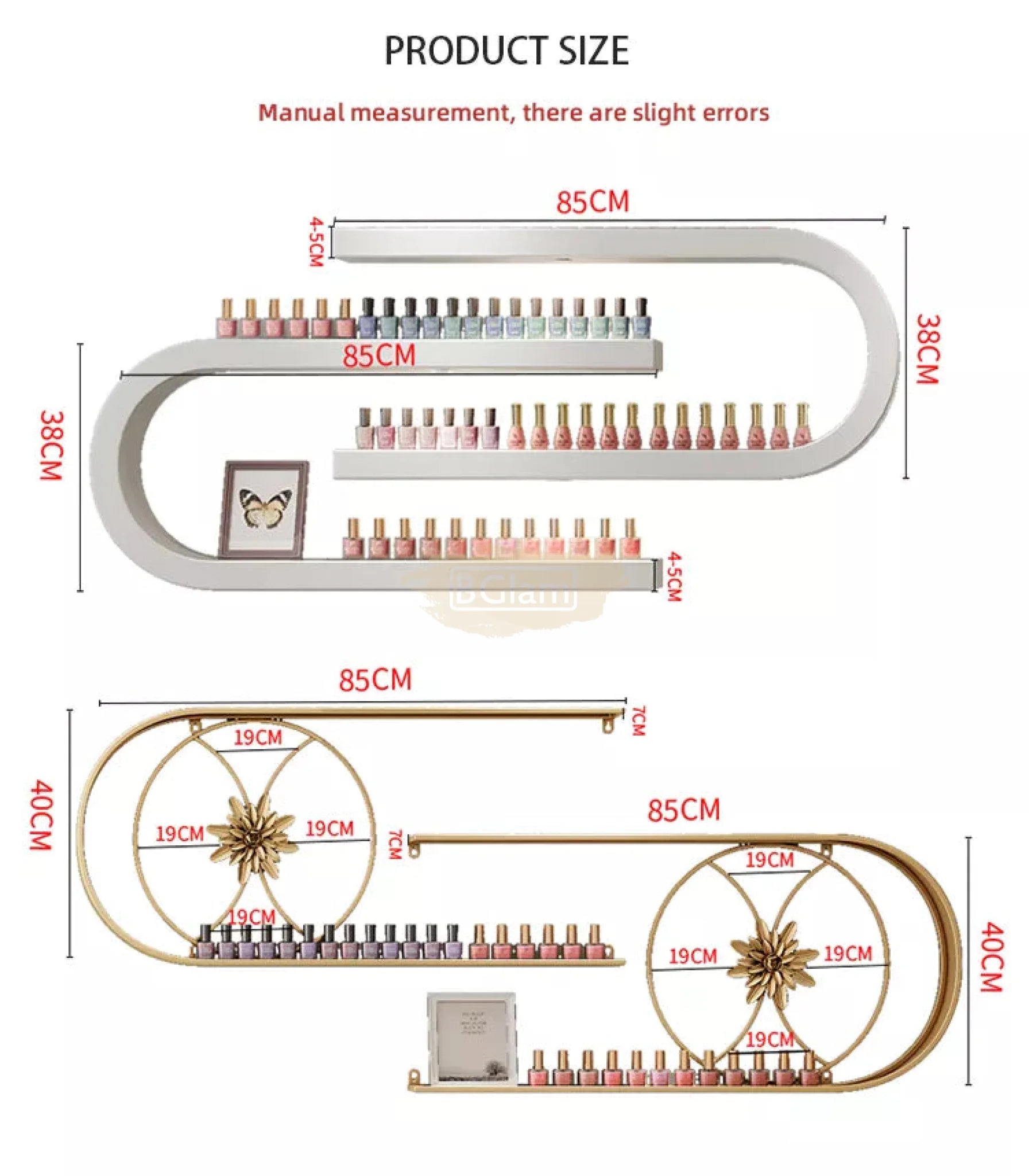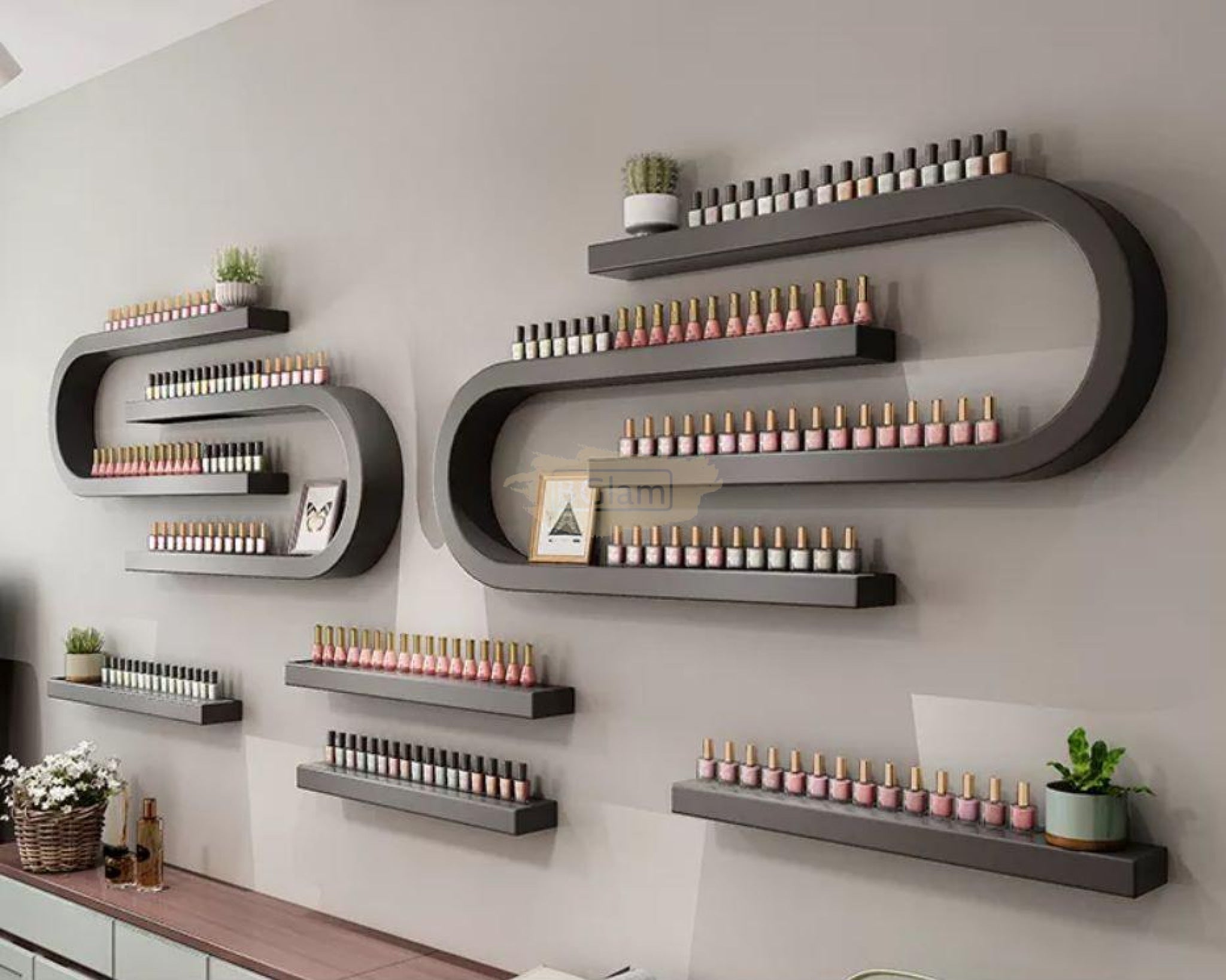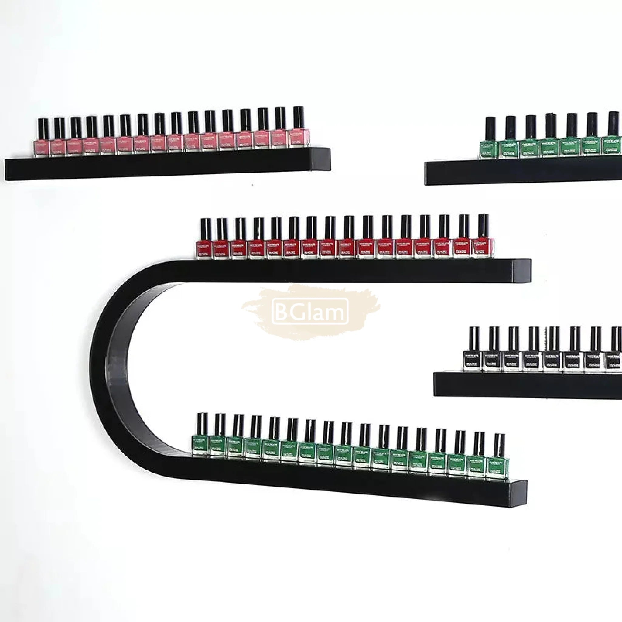 2 U-Shaped Nail Polish Wall-Mounted Rack Displays with 2 display bars - Black (rack only)