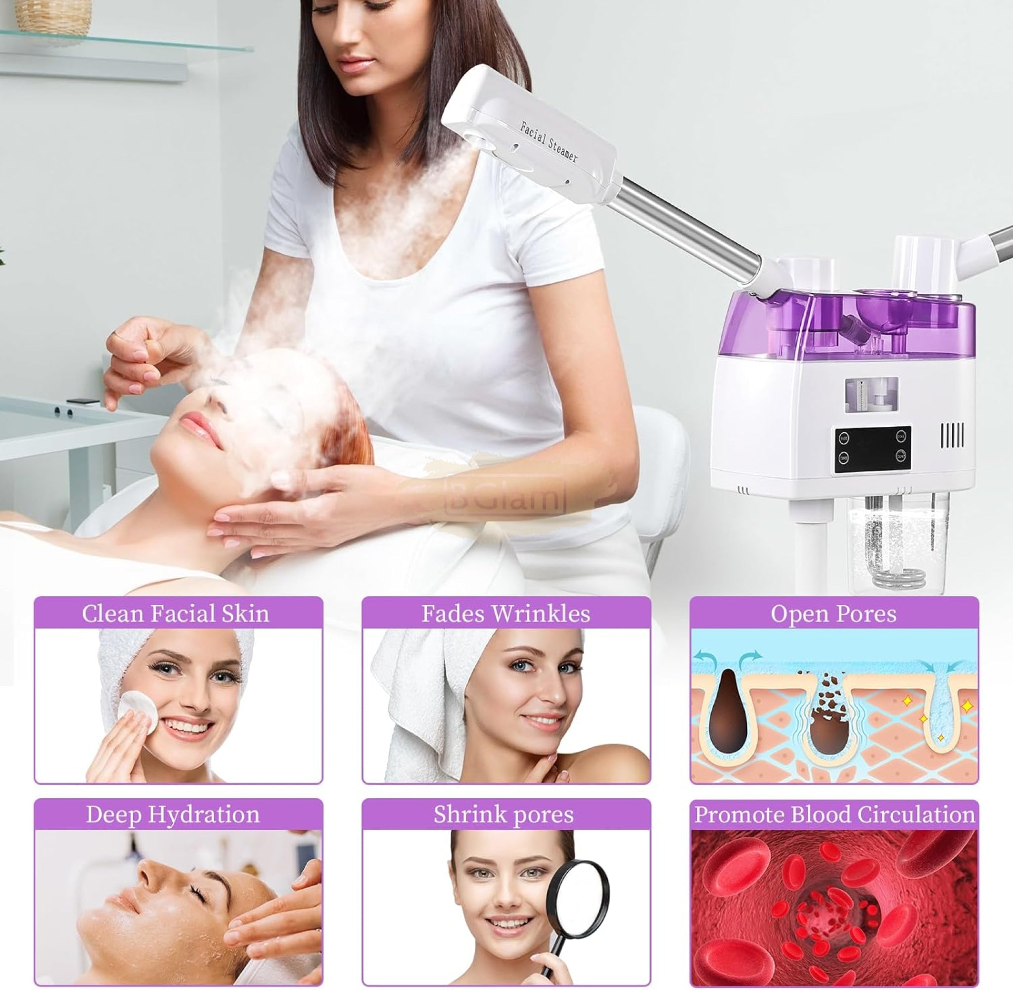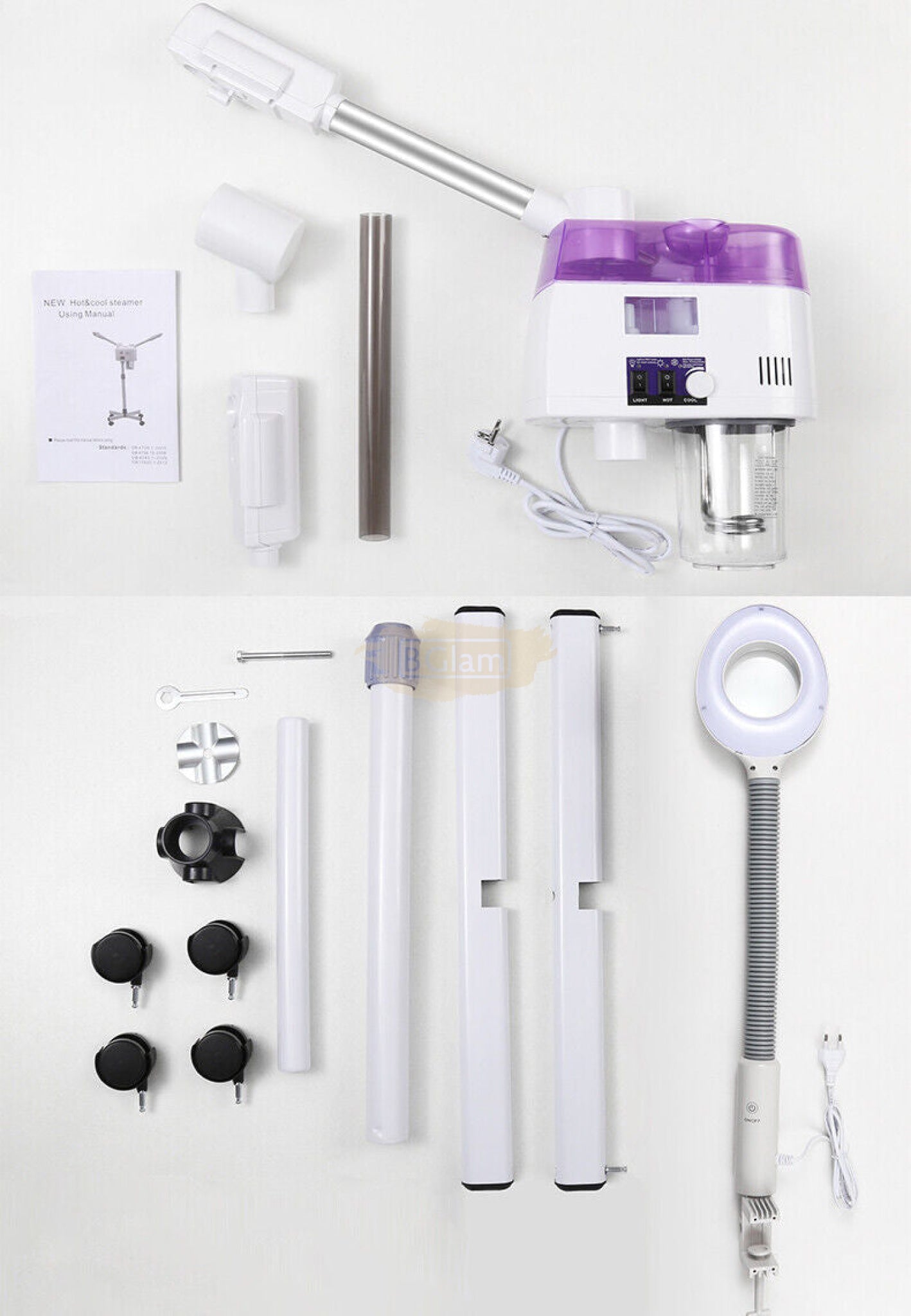 Professional 3-in-1 Facial Steamer - Hot & Cold Mist with Magnifying LED Lamp | E-33