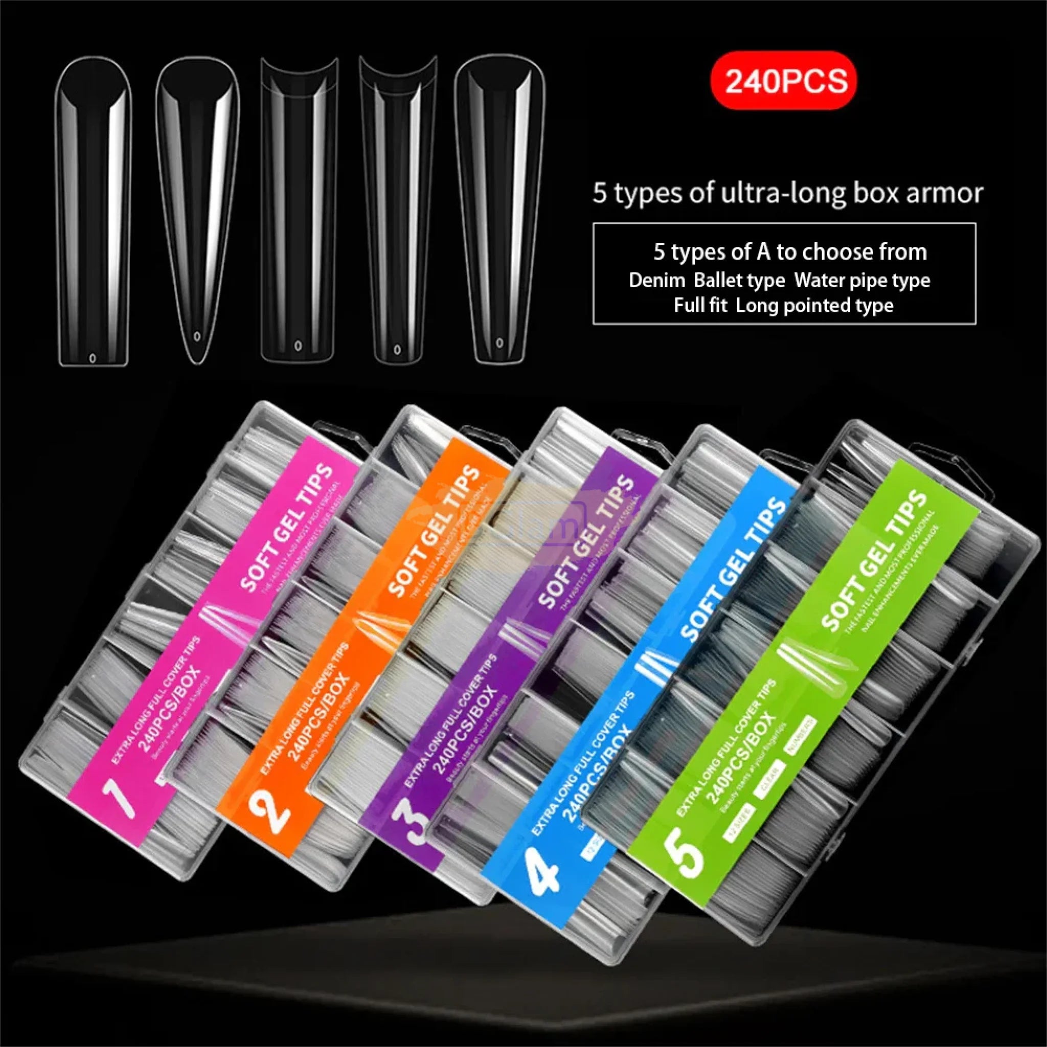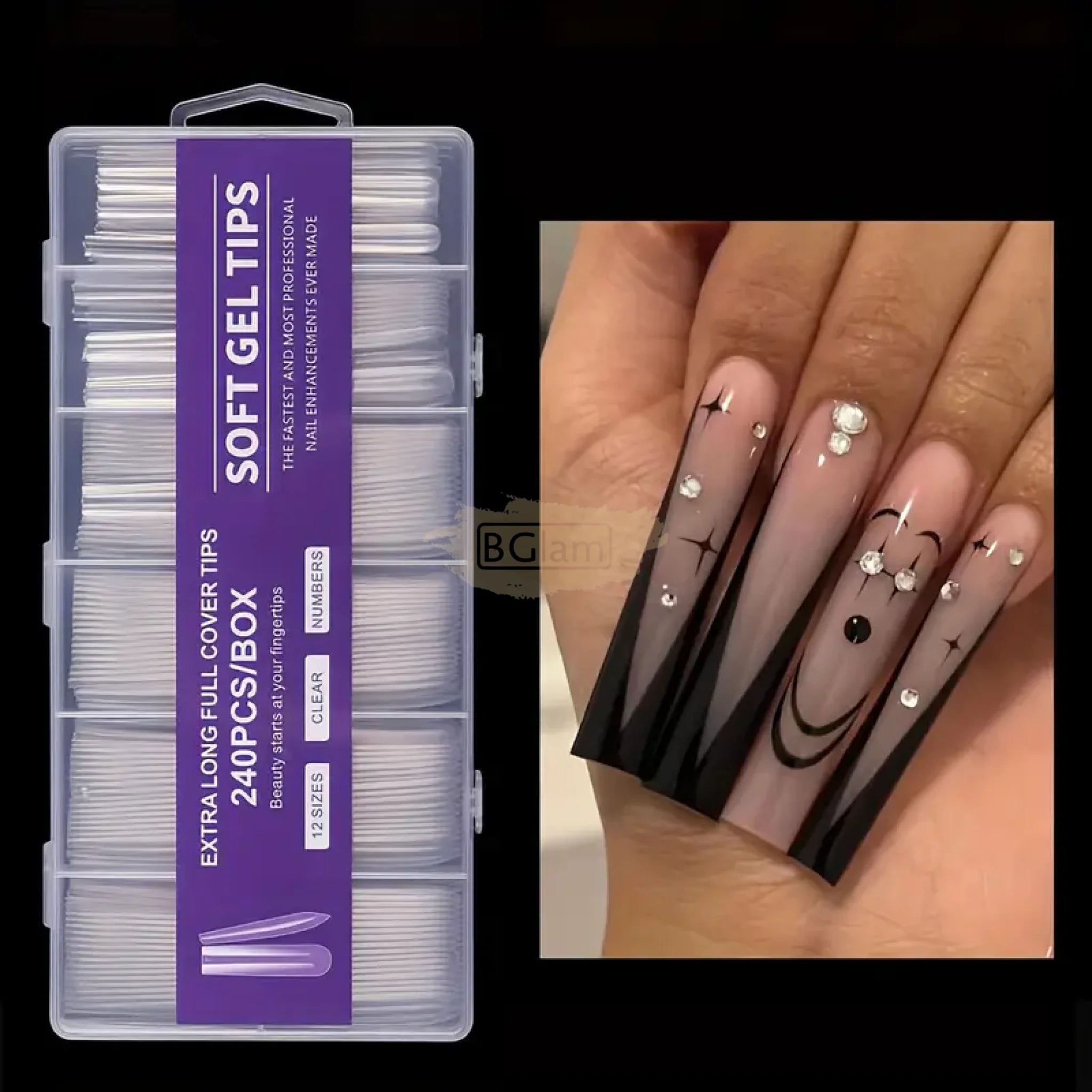 240 Purple Box Soft Gel Tips Extra Long Full Cover