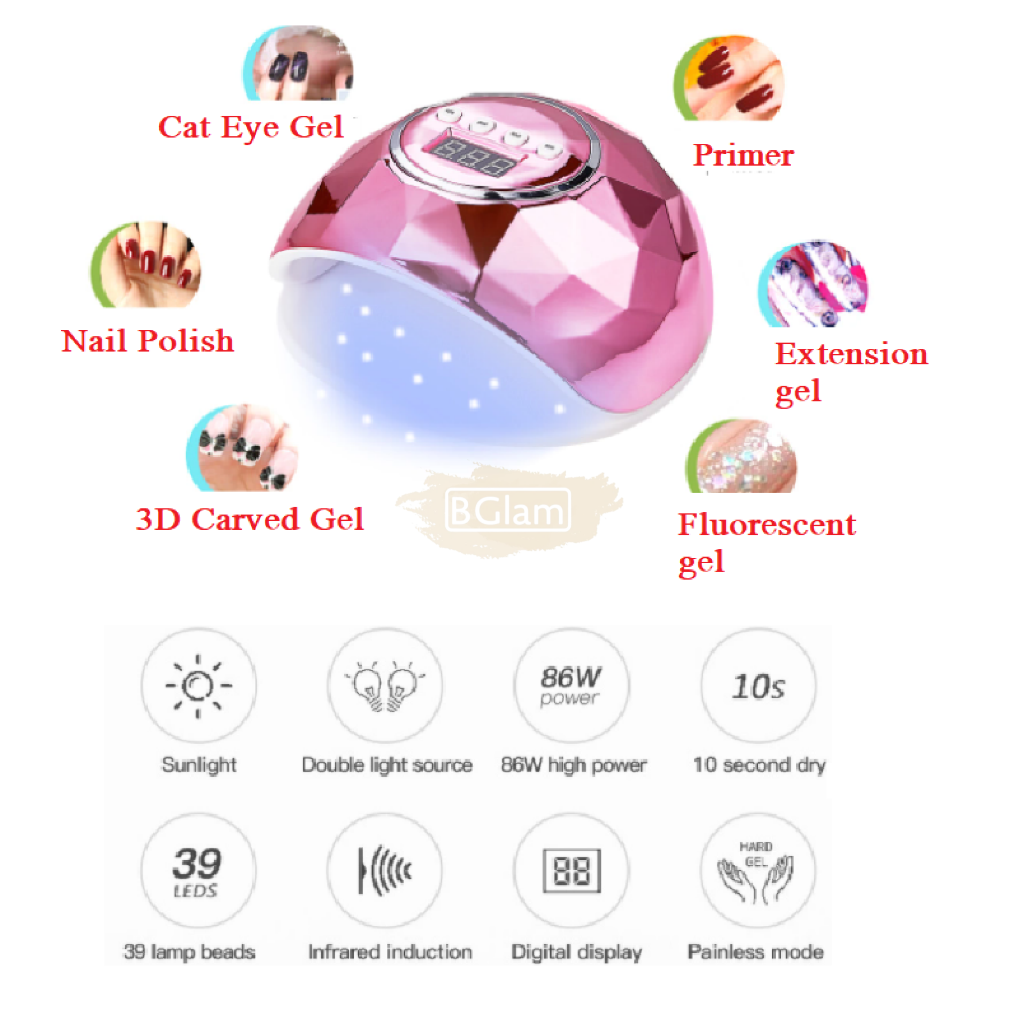 Diamond Design UV LED Nail Lamp 86W | White