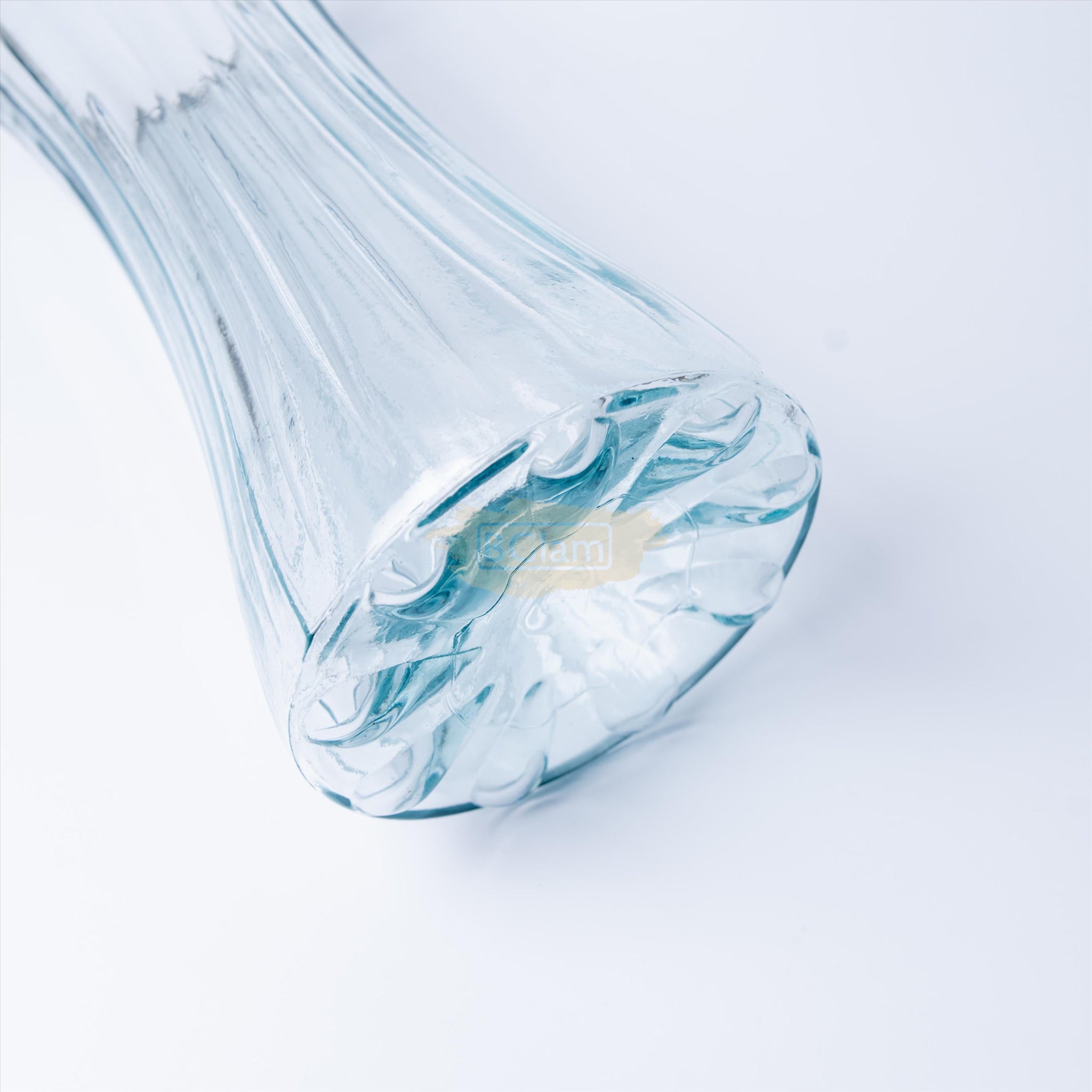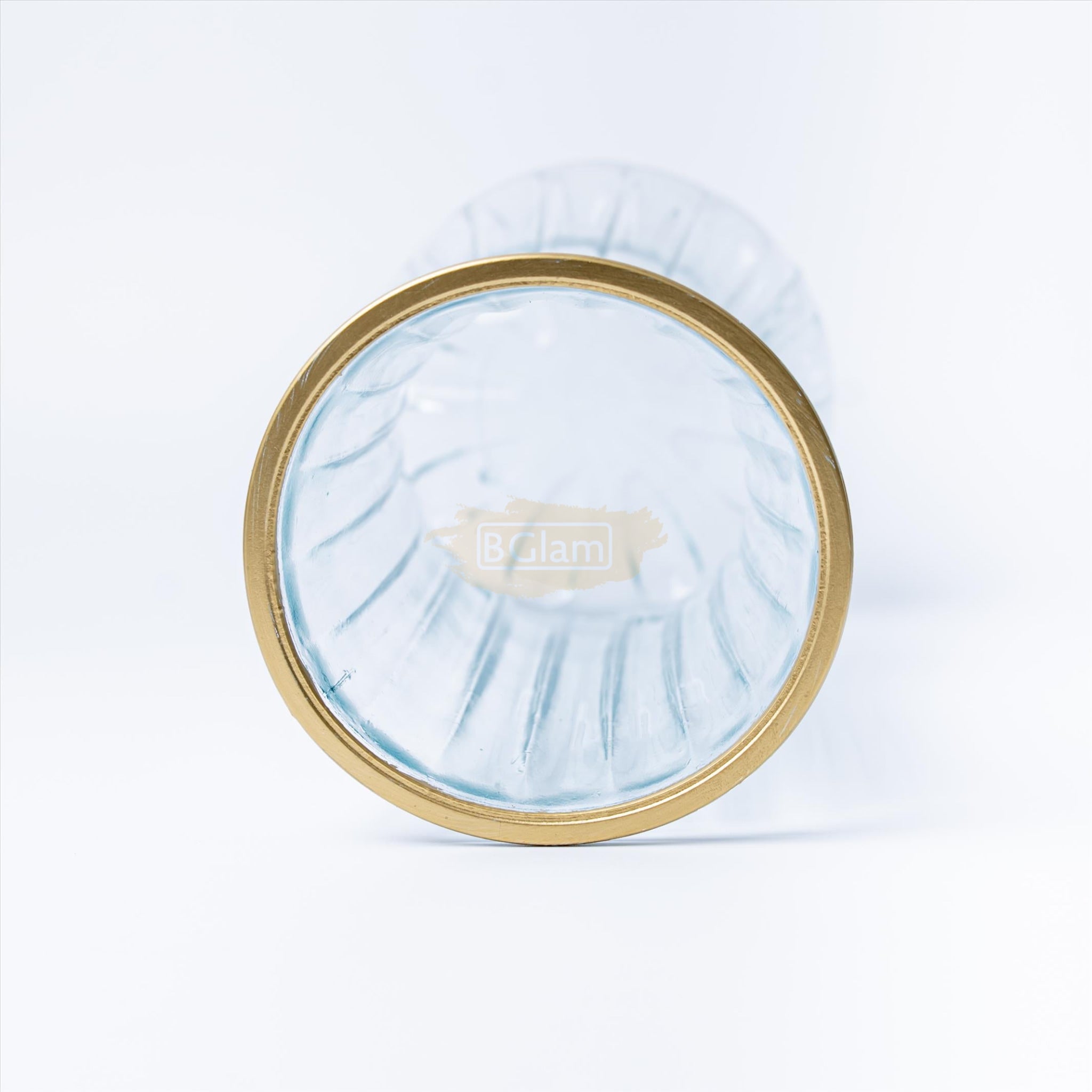 Wide-Mouth Clear Glass Textured Vase with Gold Trim - 29*10cm